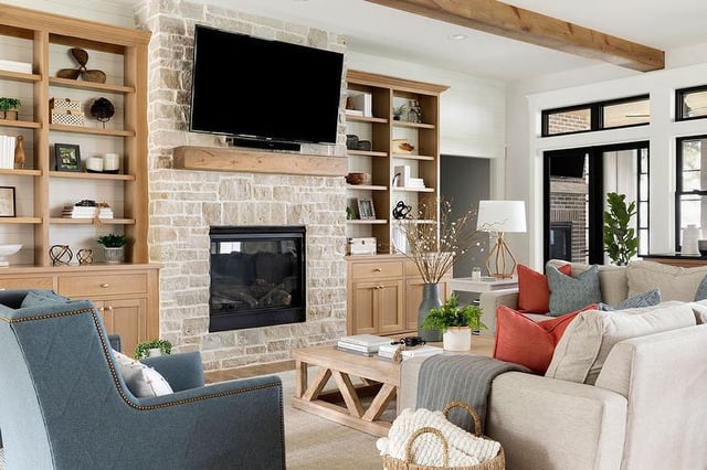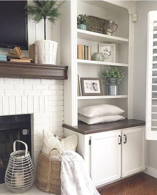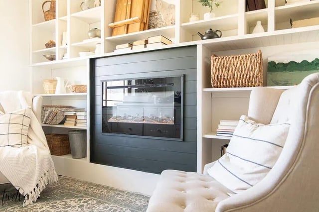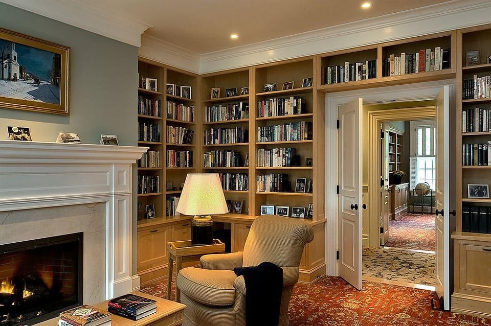 I am going to build some bookshelves for our room, but am a little stuck on the design layout. We want to have the shelves on the right side, both corner walls. the left wall extends into the kitchen so we don’t want to put them there unless we can’t get a design to look ok.