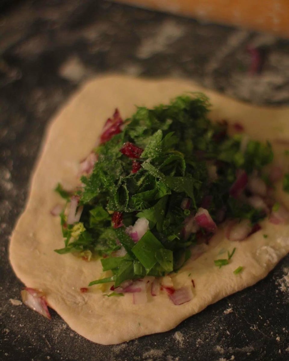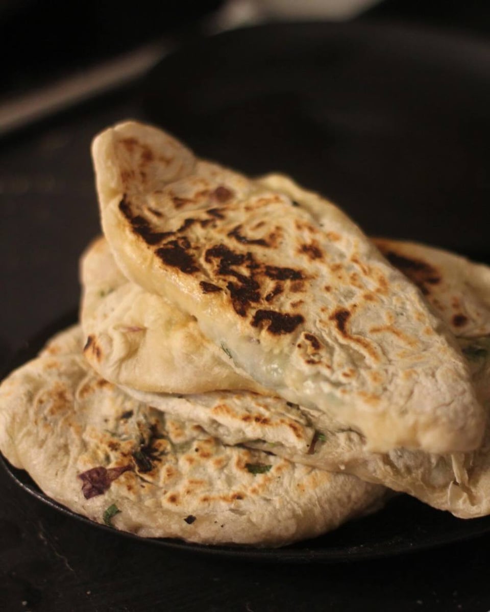Zhingyalov hats (flatbread stuffed with finely diced herbs and green vegetables. It is a traditional dish of Armenians from Artsakh and Syunik and has traditionally been a staple in times of scarcity, such as famine and war).