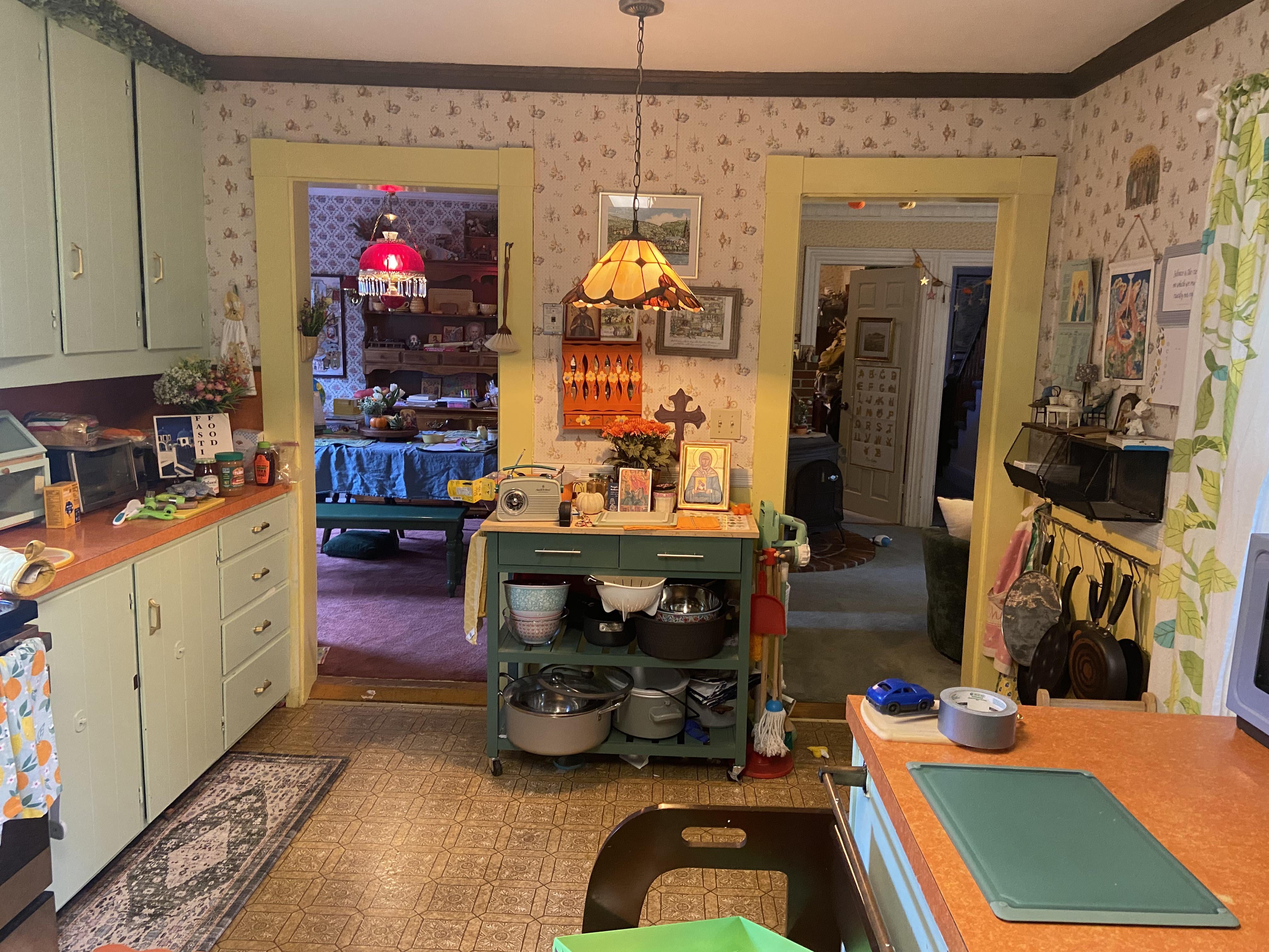 Hi! So my kitchen has a lot of colors, however, it also has really old wallpaper. The wallpaper can’t be removed (I’m not sure how old it is…but it’s part of the wall now. The walls are also horsehair so it all just crumbles together…)