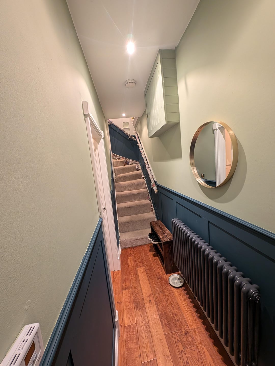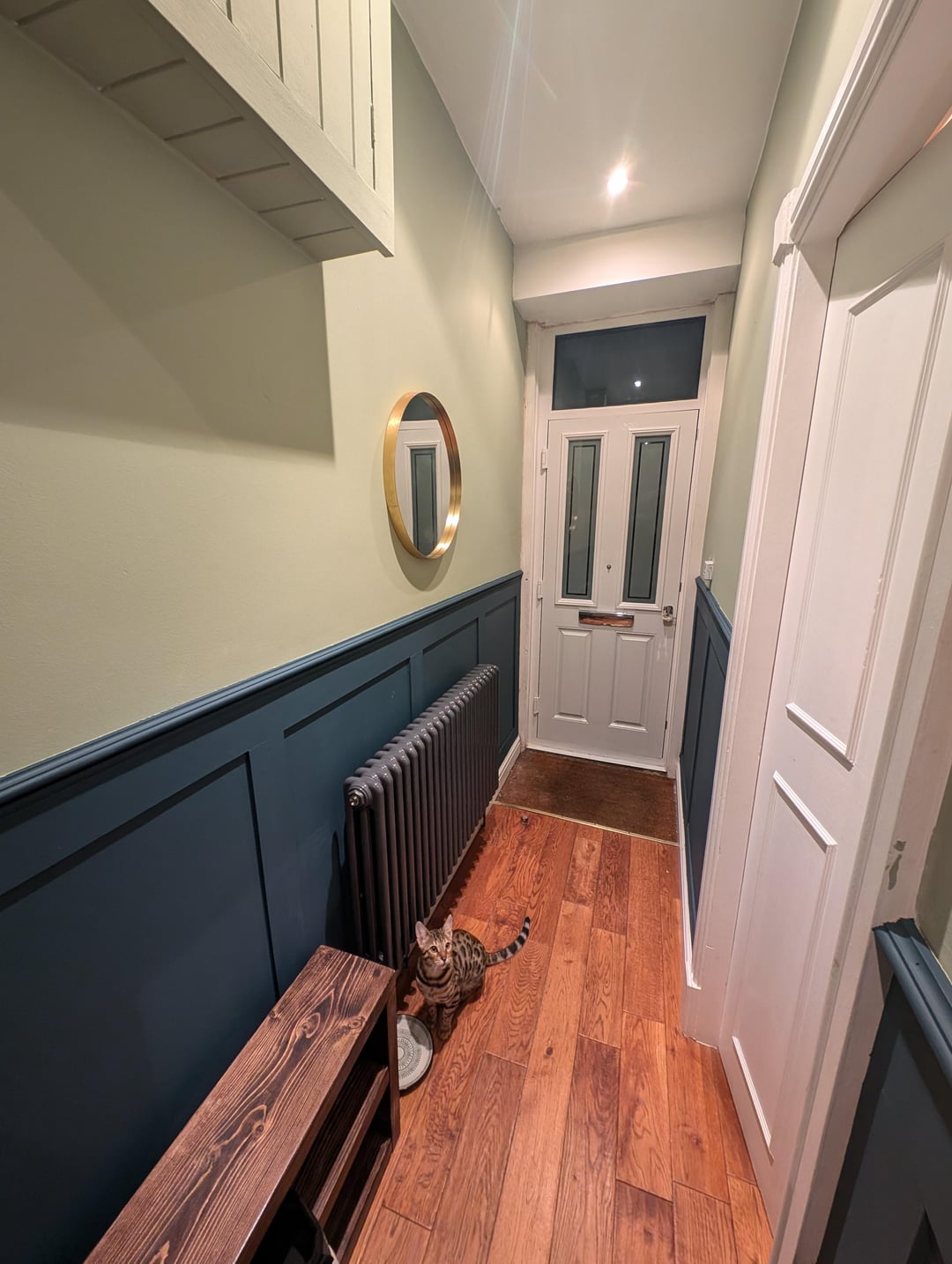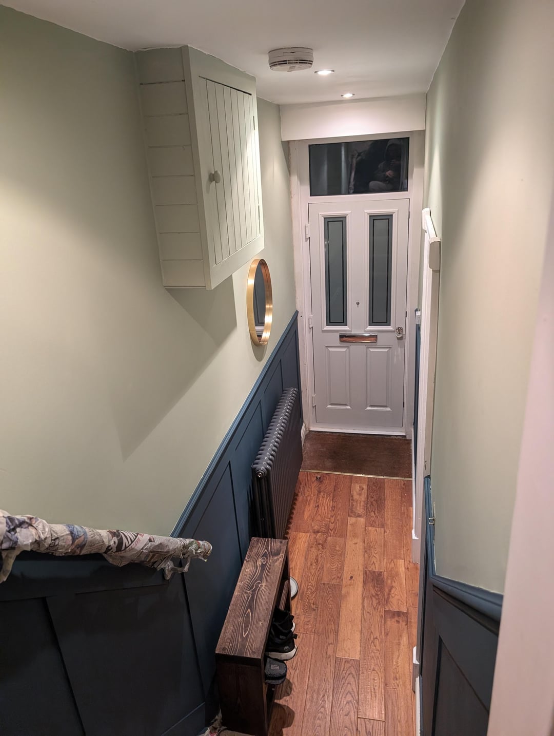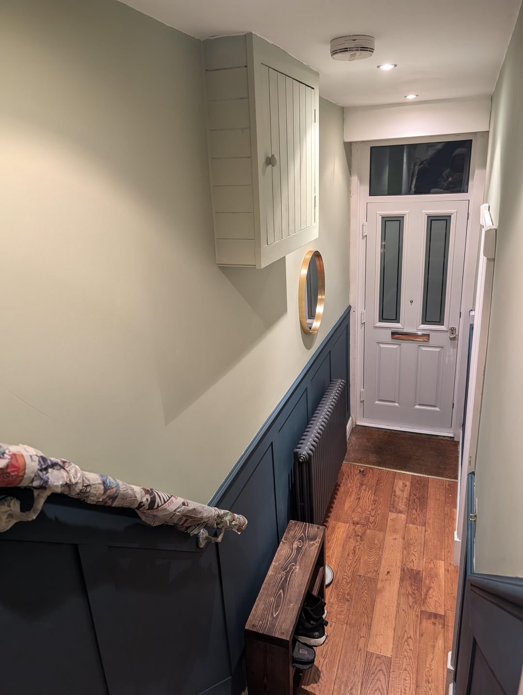 We are in the process of decorating our entrance Hallway, we wanted a half a half look with paneling on the lower and a complimentary colour above.