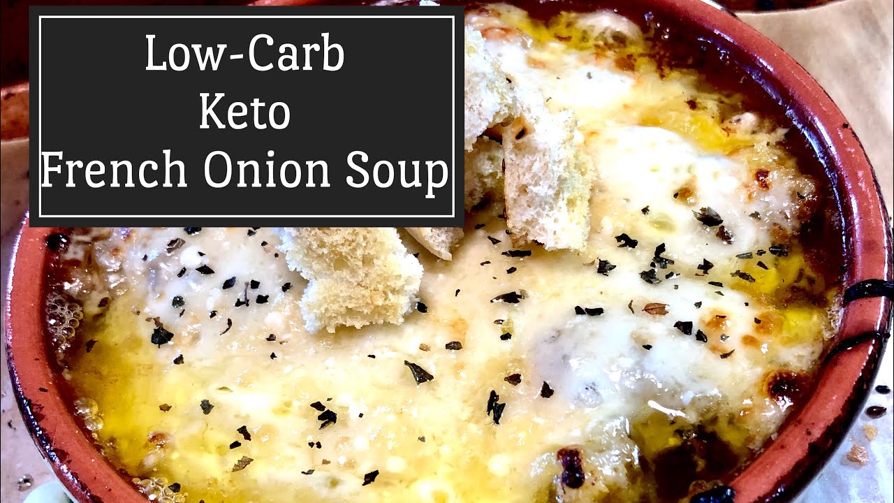 As some of you know, we don’t think believe that you have to sacrifice flavor just because you’re cooking low carb. Because onions do have carbs, we decided to just use one medium onion—but I promise, you will still have a delicious, fantastic flavor. When we took the first taste of this soup, replacing these bagels for the bread, I couldn’t believe how absolutely perfect they were. The bagel croutons held their form and the texture was just right, and I am beyond thrilled with the combination of cheeses we used for the soup!
