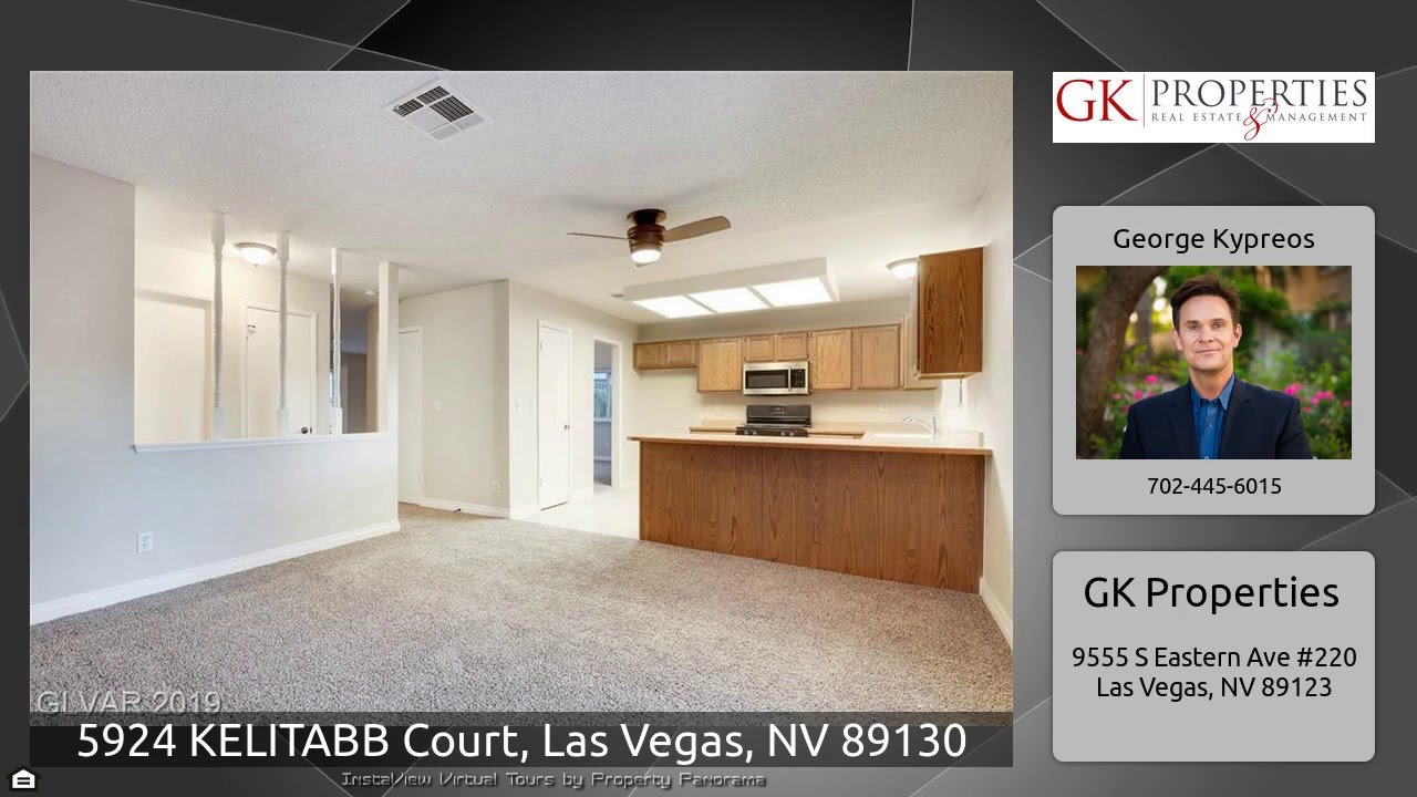 The Virtual Tour for the property at 5924 KELITABB Court, Las Vegas, NV 89130 listed for $277,900: Other homes for sale by George Kypreos of GK Properties: Admirable TWO STORY 3BDRs & 2.5BTHs HOME w/NO HOA. Adjoined FL Living & Dining Rms w/bay window welcome upon entry. Separate Family Rm w/cozy fireplace & French doors to the back. Kitchen w/laminate cnts, walk-in pantry & breakfast bar overlooking the living space. All BDRs upstairs. MBD w/walk-in closet & MBTH w/dual sinks, tub & shower combo. Nicely situated on an oversized lot on a cul-de-sac w/large wrap around covered patio in the backyard.