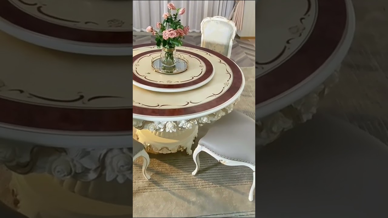 Tags: French vintage furniture, solid wood dining set, rock slab tables, high-end home decor, luxury dining experience