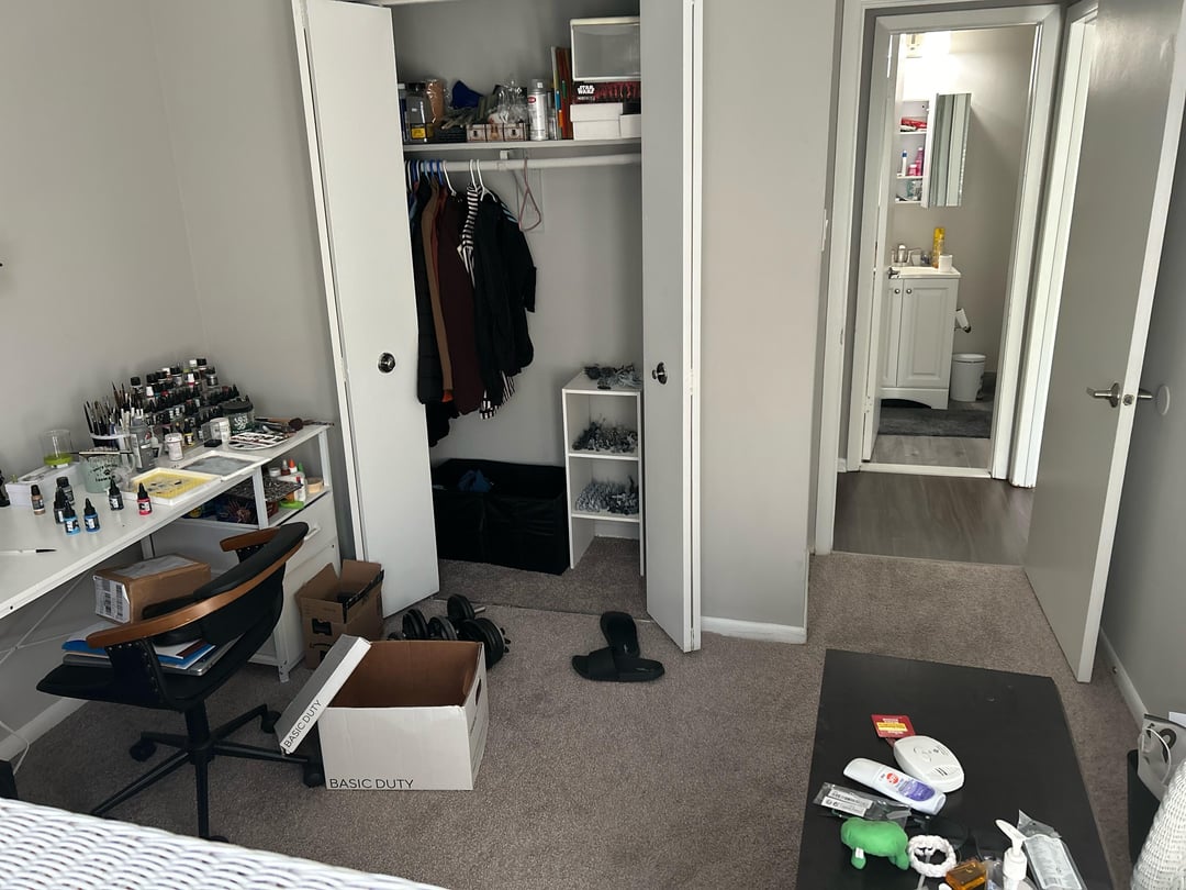 The white dresser, brown tv stand style thing, and all the other stuff on the floor by that wall will be moved around or removed, so dont worry about those.