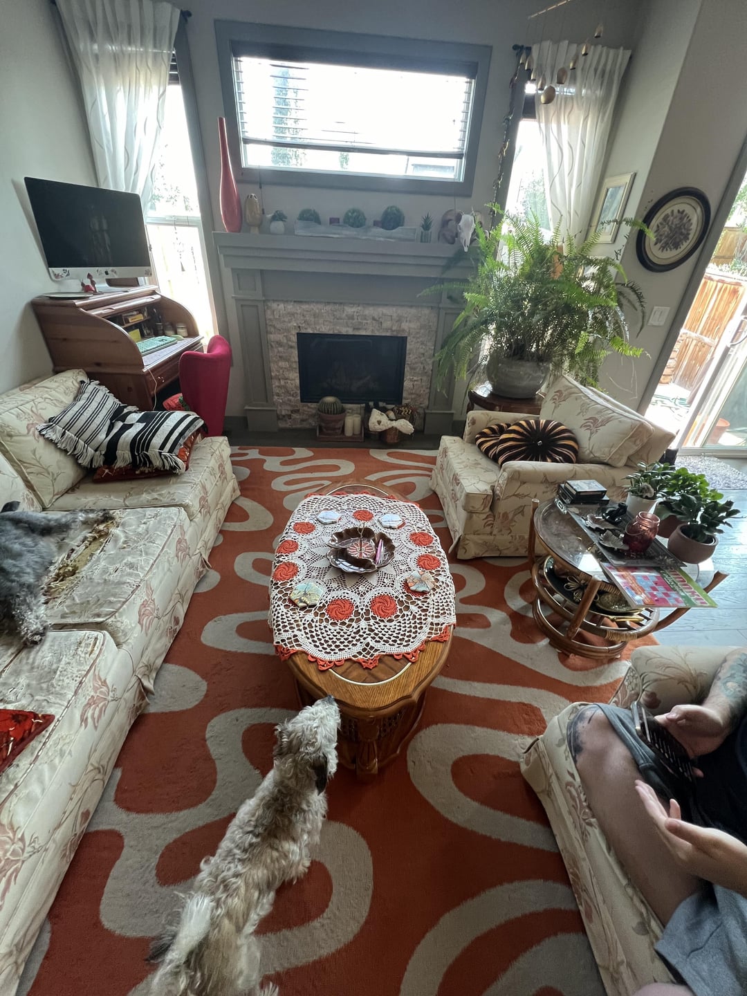 The problem I’m running into is that all the trim everywhere is sage(?) green and I don’t want to do a complete repaint of all the trim and fireplaces mantel etc.