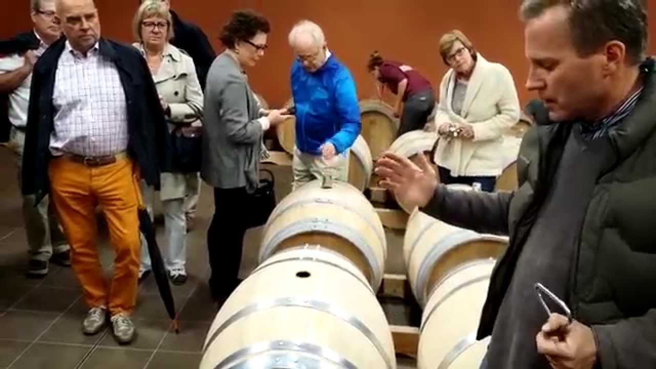 *Come on a Wine & Food Tour with BKWine* — Chateau de France, a wine estate in Pessac-Leognan in Graves in Bordeaux. A visit with Arnaud Thomassin who shows us the typical soil, terroir, that he has in his vineyards. Almost ripe Cabernet Sauvignon grapes soon to be harvested. A look into the wine cellar with grape reception, sorting table, destemmer etc, the latest model of Le Cube and Viniclean from Socma. The barrel cellar for ageing of the wines, with a demonstration of batonnage, the stirring of the lees.