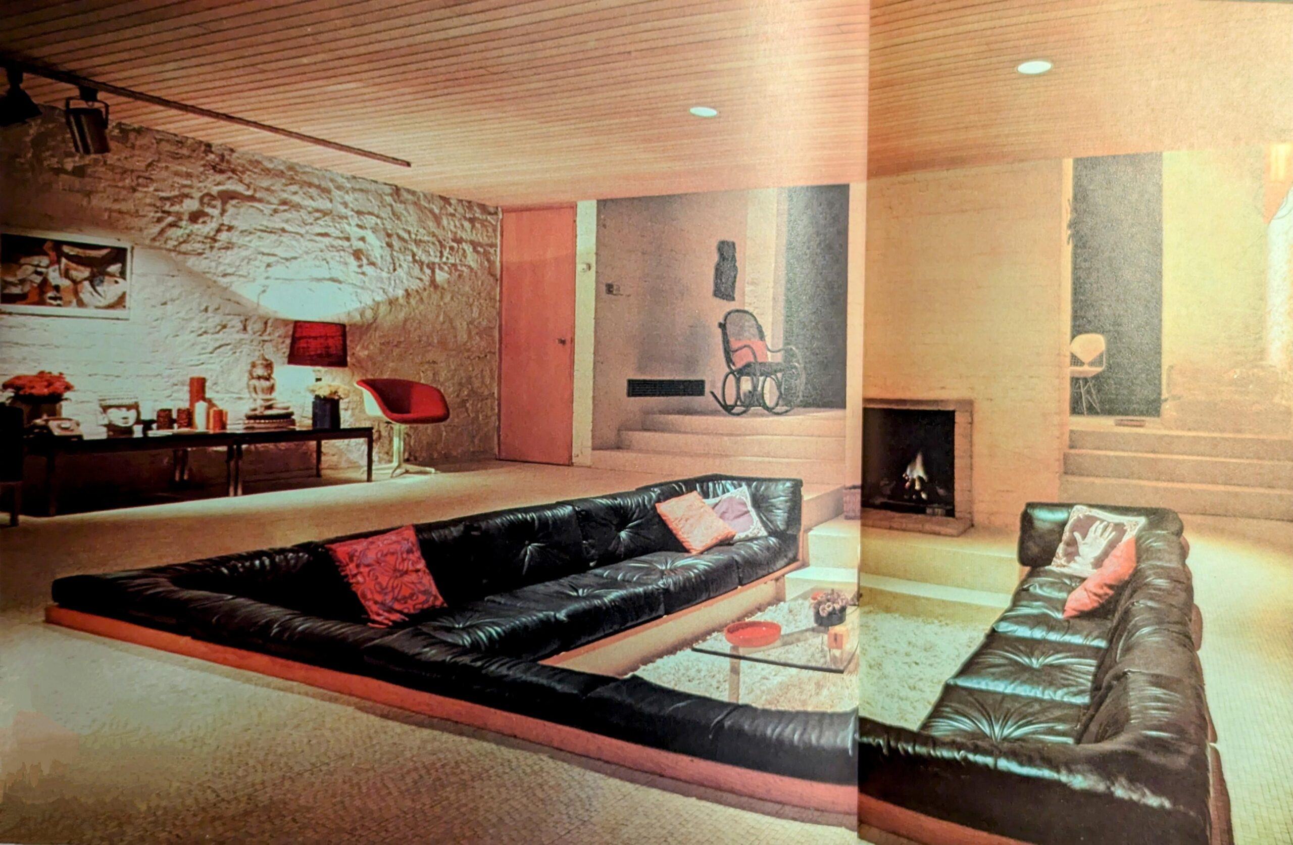 Leather drop-floor sofa in an Irish house. From 1971 book “Modern Furniture and Decoration” 4059×2652]
