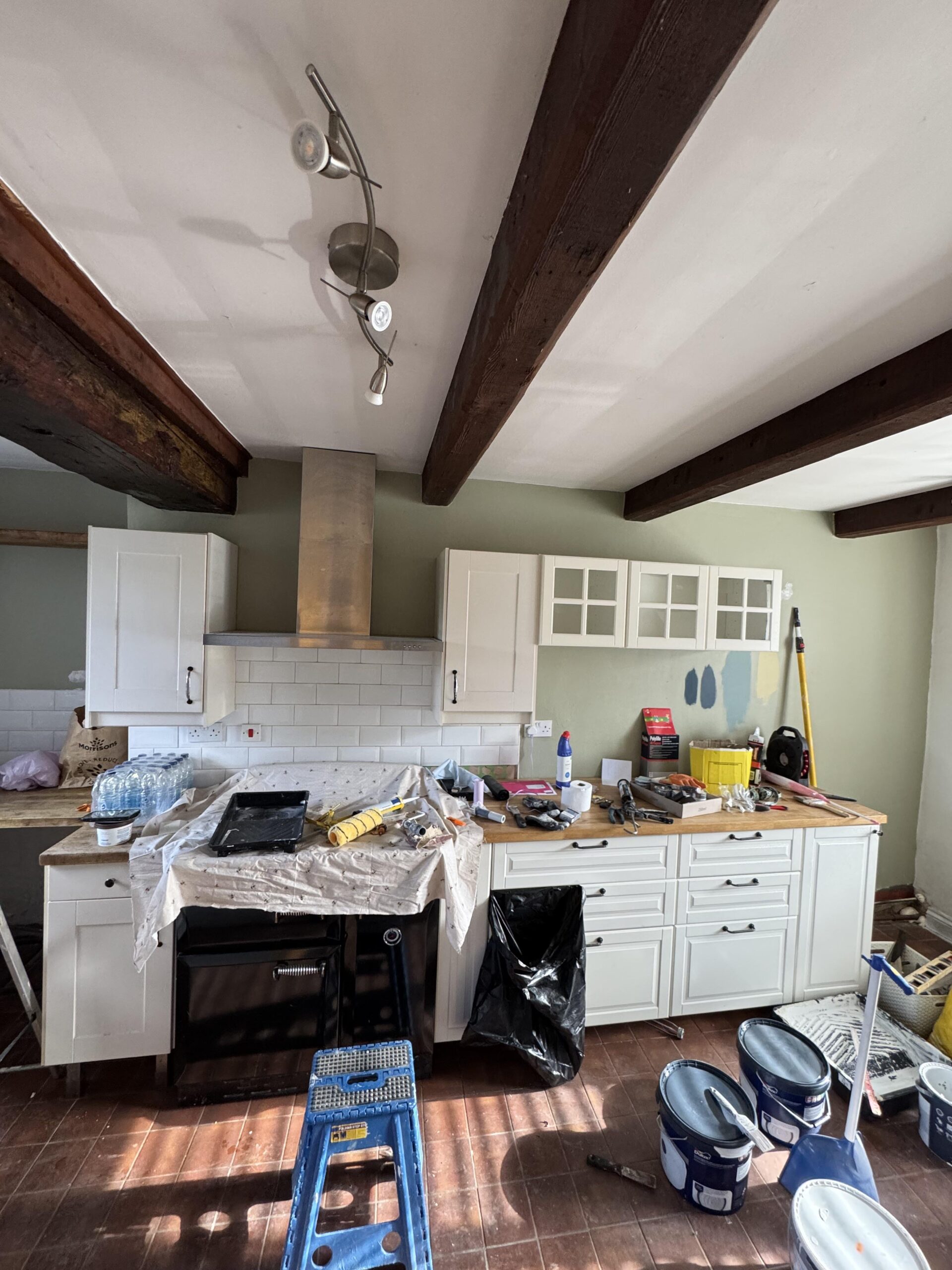 Could anyone please recommend a colour to paint my cottage kitchen walls? I’m thinking to keep the ceiling and most walls white but pick a colour for this back wall.