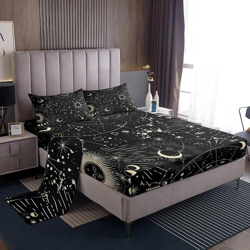 Hello folks I'm looking for some recommendations for my room I'm going for like a whimsigoth/ celestial vibe and am going to get a velvet purple duvet cover here are some ideas for the sheets that I want to get I just can't seem to find any with good reviews any recommendations on places to buy a decent set of sheets like this?