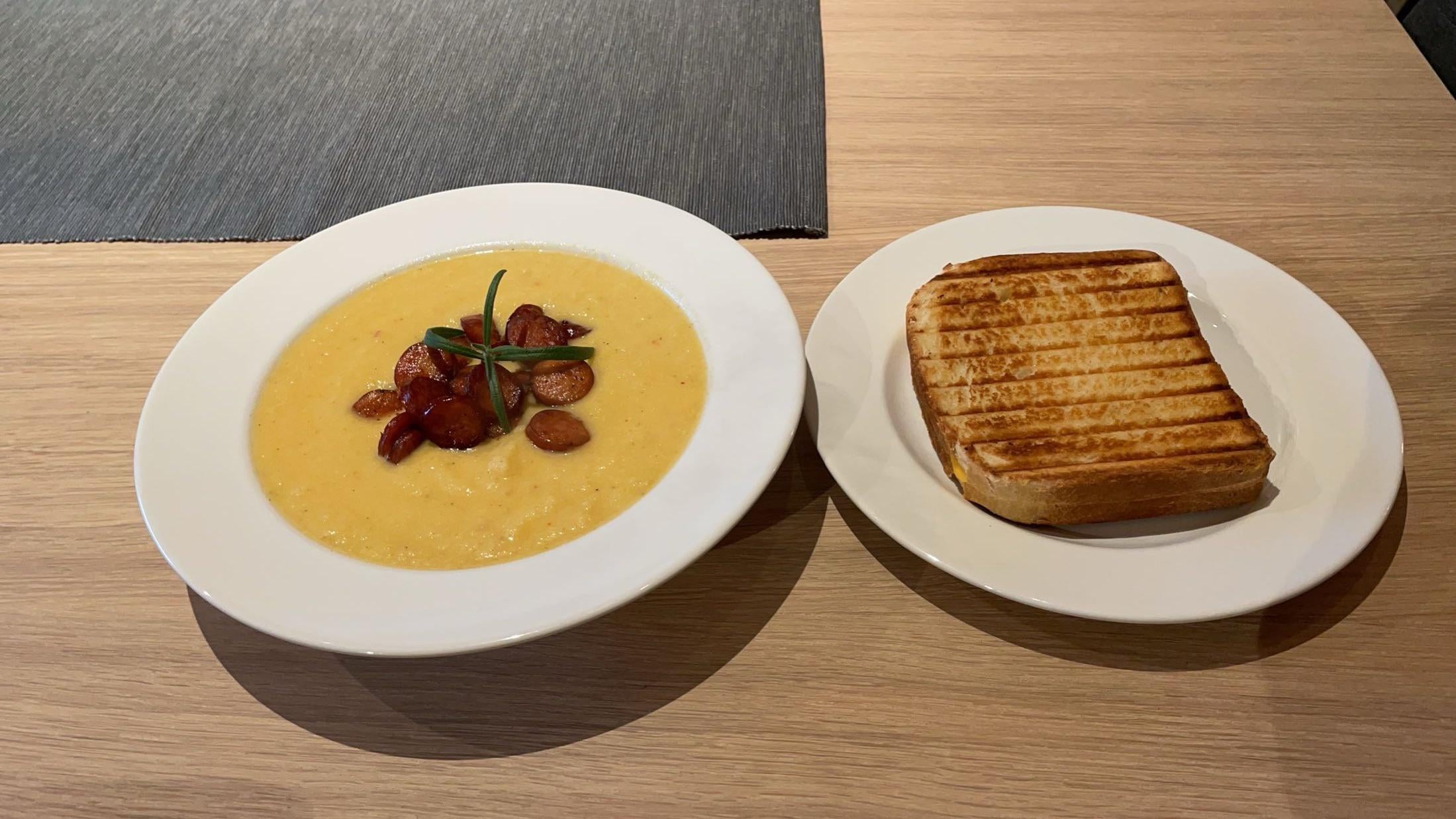 In Europe Eats Cauliflower soup October 11, 2024 Cauliflower soup with rosemary, chorizo and nduja, with a grilled cheese sandwich.by GreenNordicChef Write A CommentYou must be logged in to post a comment.