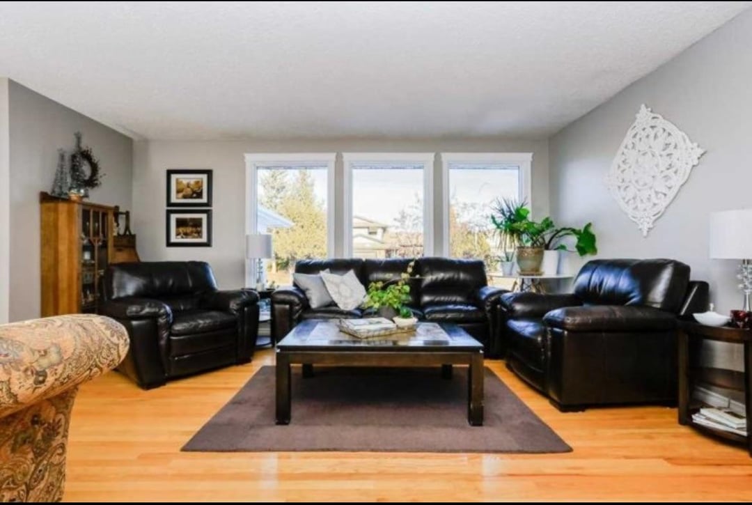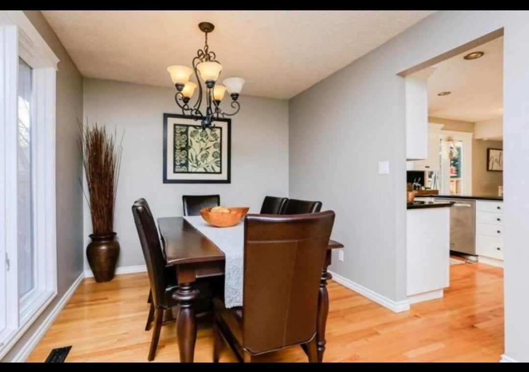 Moving into this house with a huge combined living room & dining room situation. How can I make it look cozy/Academia esque without buying furniture like these chunky leather couches? Thinking of putting bookshelves on the back wall where the dining table is. In the first photo, the left edge of the wall is cut as it ends there and open to serves as an entrance from the main door.