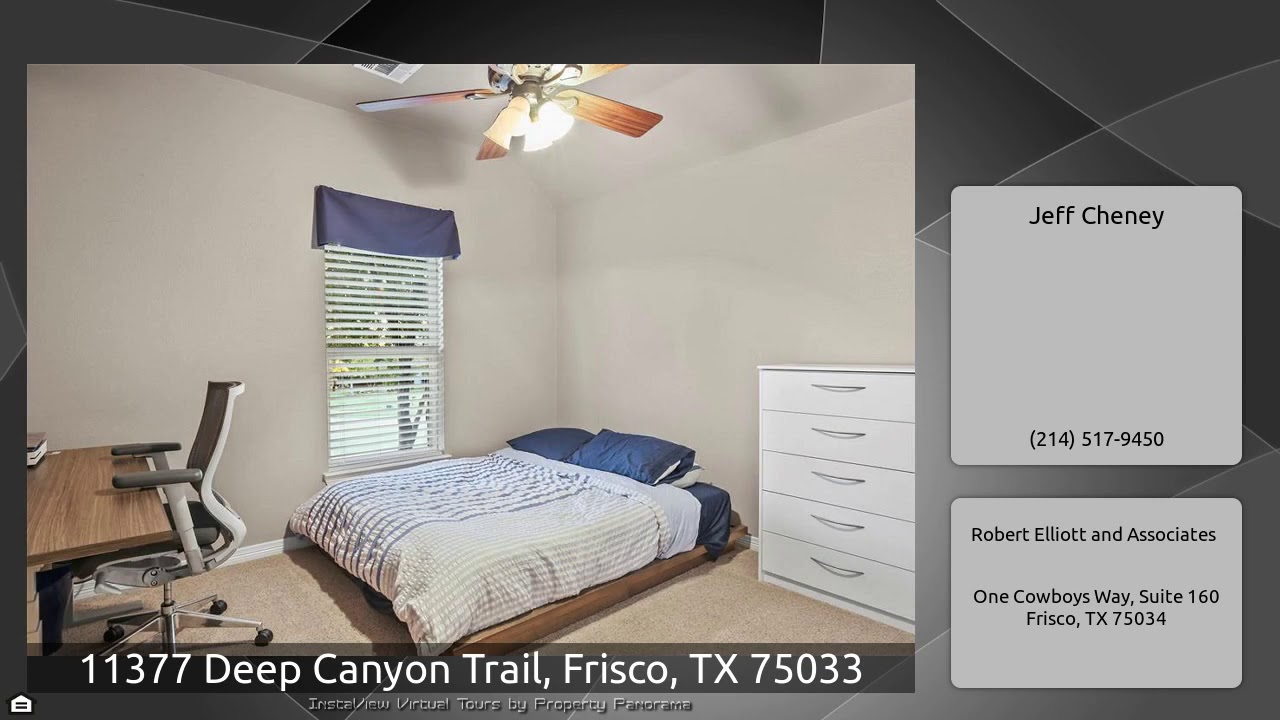 The Virtual Tour for the property at 11377 Deep Canyon Trail, Frisco, TX 75033 listed for $549,900: Other homes for sale by Jeff Cheney of Robert Elliott and Associates: Large cul- de- sac lot with dream backyard & completely updated interior! Over $175k in upgrades. Cooks kitchen w oversized granite island, decorative backsplash, 2 pantries & Pella sliding door to backyard. All bathrooms updated. Beautiful dining room w French door. Family rm overlooks pool & outdoor kitchen. Master suite offers luxurious bathroom w oversized seamless shower & modern rectangular soaker tub. Lrg walk in …