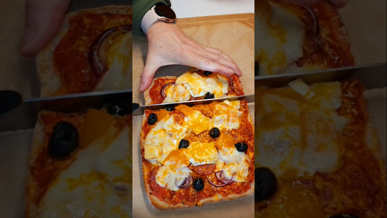 Easy and nice recipe with French loaf of bread seasoned tomato sauce, pepperoni, 3 kinds of cheese, 1 onion, olives, bell pepper, 20 mn in the oven at 190° or gas 5. Bon appétit!