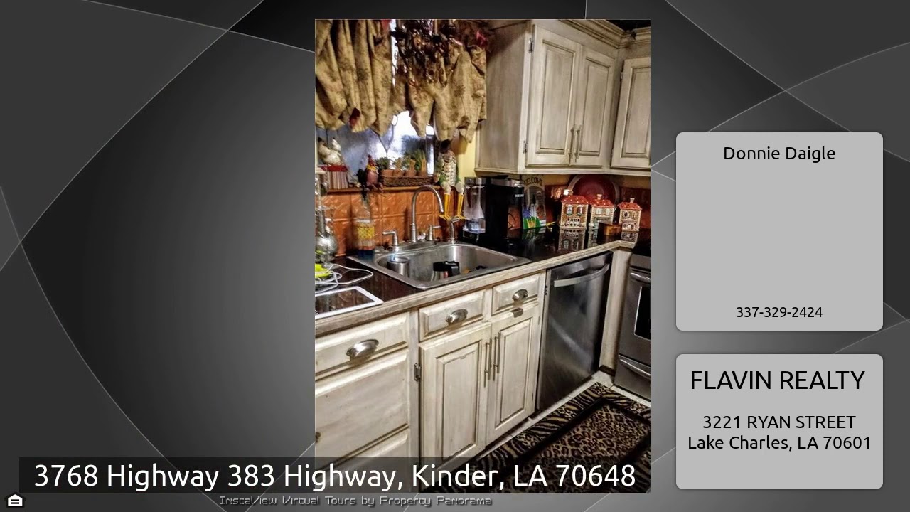 The Virtual Tour for the property at 3768 Highway 383 Highway, Kinder, LA 70648 listed for $285,000: Other homes for sale by Donnie Daigle of FLAVIN REALTY: Simply beautiful French Country home with 2160 sq ft of living area (give or take) and 640 sq ft of garage. Brick and stucco façade. Interior includes a beautiful kitchen with antiqued cabinetry, granite counter tops, pantry, double oven and range, refrigerator, dish washer with ceramic tile floors. Living and dining room open floor plan, den/parlor, foyer all with wood floors. French doors adorn the entry to the large and lush master …