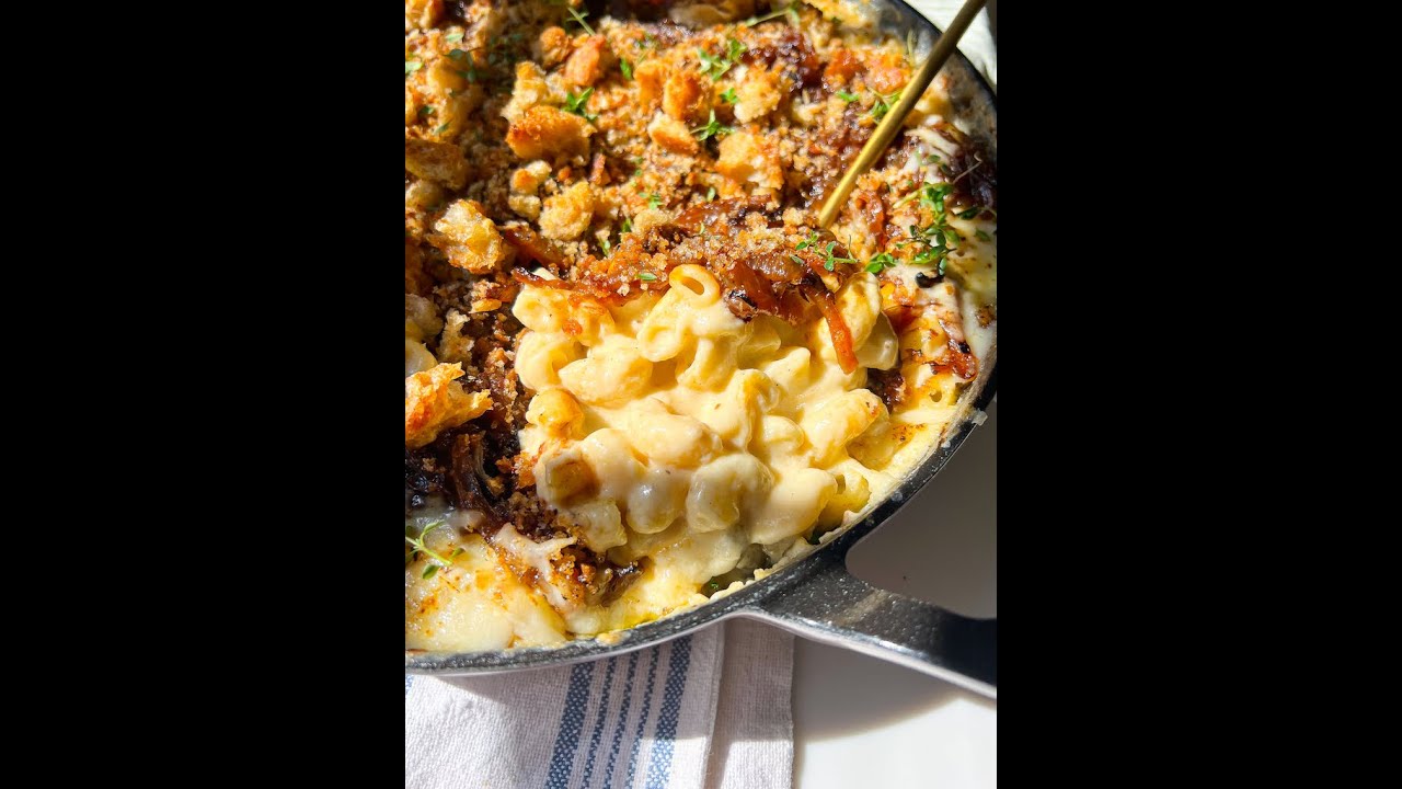This French Onion Mac N Cheese take the classic homemade to an elevated holiday side dish like none other! The mac n cheese is creamy and cheesy with a more mild flavor that’s not overwhelming, topped with a crispy crostini and caramelized onion topping for those French Onion Soup flavors. Check it out here: https://www.abrightmoment.com/recipes/french-onion-mac-n-cheese