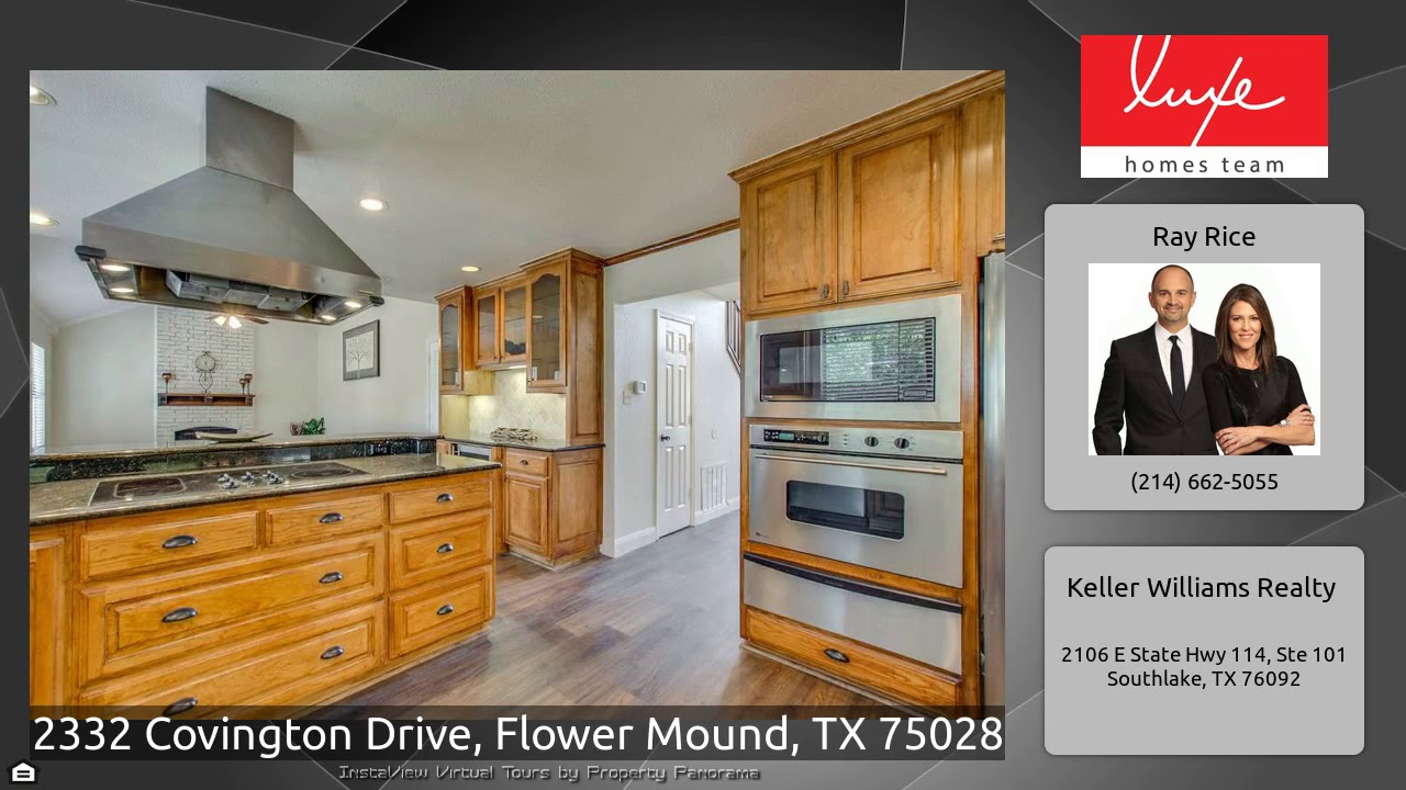 The Virtual Tour for the property at 2332 Covington Drive, Flower Mound, TX 75028 listed for $345,000: Other homes for sale by Ray Rice of Keller Williams Realty: LIGHT & BRIGHT w. BEAUTIFUL UPDATES*Extensive hard-surface flooring*Crown molding & 2in blinds*Updated Kitchen w.granite, SS appliances, stone backsplash, custom cabinets & a wine cooler & wine storage unit *Family Room. w Fire place Combo Formals w.wood floors*French doors to Master w.vaulted ceilings & plantation shutters*Master Bath w.dual sinks, jetted tub & walk-in*Granite in 2nd Bath*Lg Backyard w.wood deck & storage …