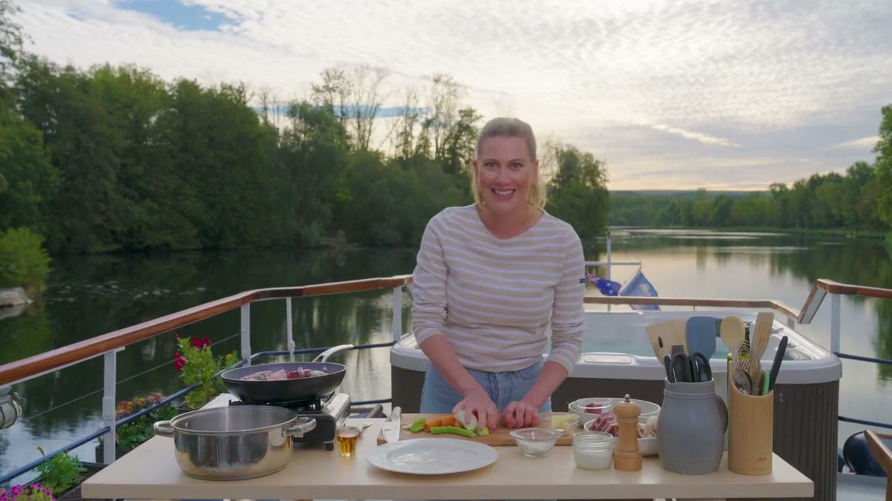 This season, Justine had the incredible opportunity to explore the stunning Burgundy region aboard hotel barge La Belle Epoque. Inspired by the picturesque scenery, she couldn’t resist whipping up a regional classic – Boeuf Bourguignon. Cooking this French delight with Burgundy wine while gliding through the canals of Burgundy? It doesn’t get any better!