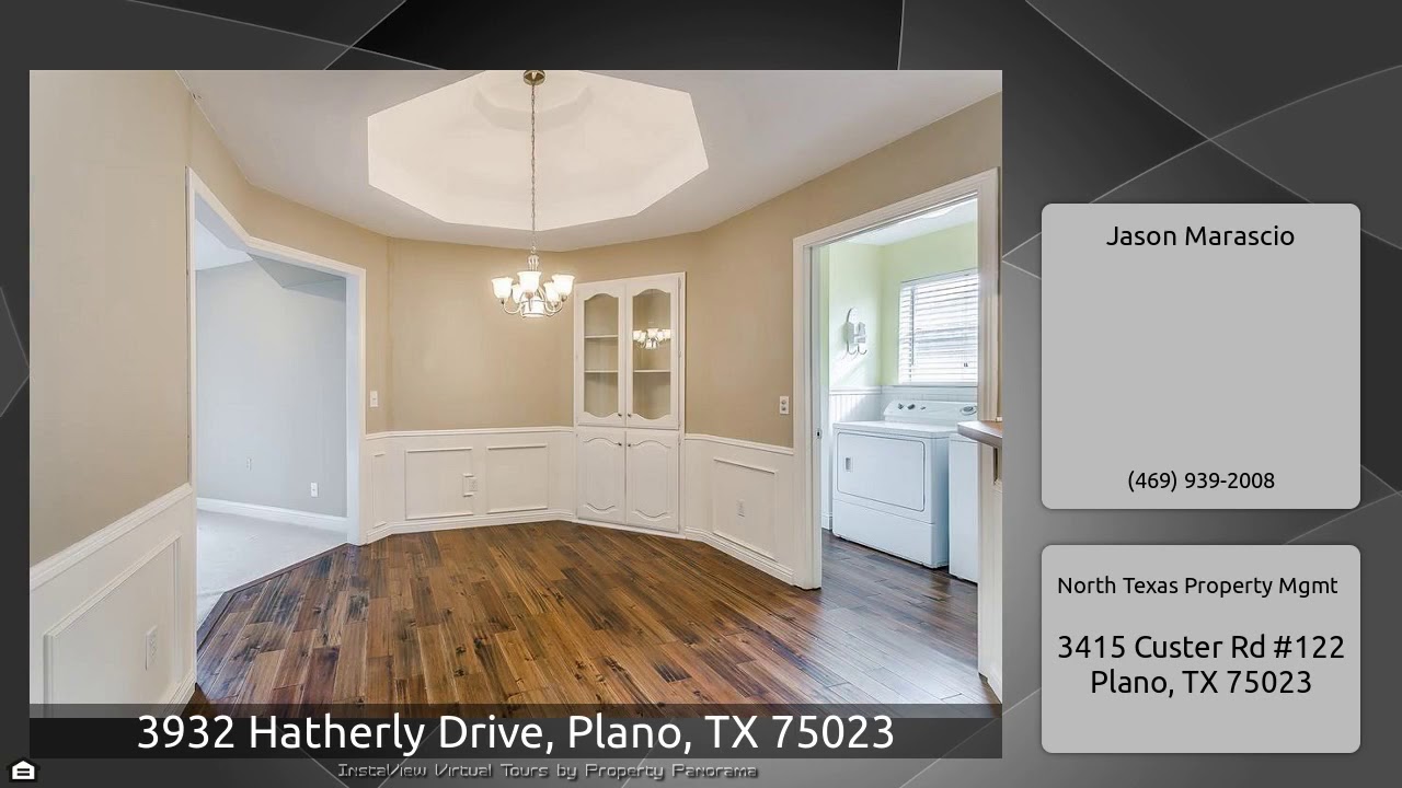 The Virtual Tour for the property at 3932 Hatherly Drive, Plano, TX 75023 listed for $2,195: Other homes for sale by Jason Marascio of North Texas Property Mgmt: MOVE IN TODAY! This Plano gem won’t last long! Plenty of square footage for all your entertaining needs! Formal living room and family room separated by unique stained glass accents. Spacious kitchen situated between formal dining and kitchen nook for easy access. Master bedroom has french doors to the family room and is equipped with a bath that has a garden tub, walk in closet, and separate vanities! Pets allowed on a case-by- …