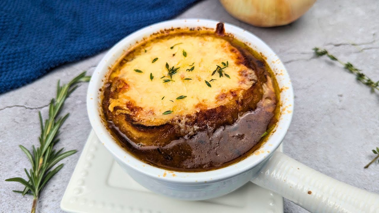 Learn how to make a hearty and flavorful French Onion Soup. This French Onion Soup recipe is made using sweet onions for a natural sweetness that balances perfectly with the rich, savory flavors. We’ll caramelize the onions to perfection, then simmer them in a homemade vegetable broth infused with fresh thyme and rosemary. Topped with slices of rustic French bread and melted Gruyère cheese, this soup is the ultimate comfort dish, perfect for cozy nights or impressing guests with a taste of French tradition.