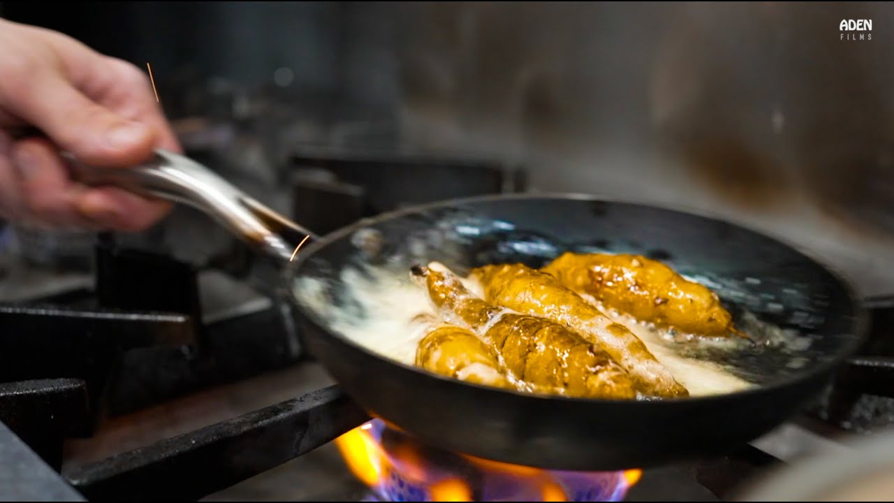 13:40 should have added a light coating of flour or anything dry and tasteless on the bottom of the cod cheek to get a actual crunch, and not stick to the stone 😀 since the fish was covered in butter but it loses water, the water underneath will dissipate the butter and let it stick because water and oil dont mix lol