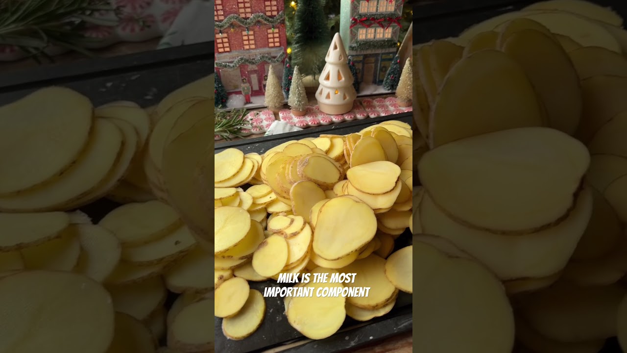 Try to get old potatoes (tend to be higher in stretch to thicken the cream/milk sauce). Wash them well before and the PEEL them! Cut them into slices but don't wash them again after silcing so you won't lose the startch. Add nutmeg, salt and pepper if you want.