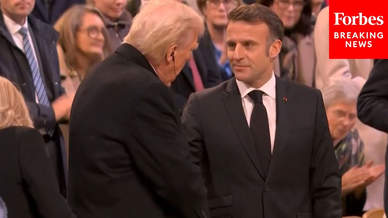 Following his remarks at the Notre-Dame Cathedral reopening in Paris, France, French President Emmanuel Macron shook Presiden-elect Trump’s hand.