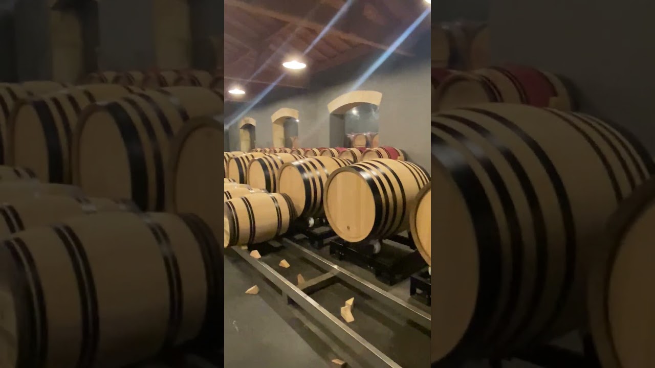 In the cellars at Chateau Olivier, in Pessac-Leognan, the barrels that had held the white wine stand empty after bottling, The video shows both a producer using larger barrels to reduce oak influence & in the background you can also see the glass globes used to ferment and age the wines. The larger barrels are 600 ltr demi-muids and the smaller ones are the more traditional 225 ltr Bordeaux barriques.