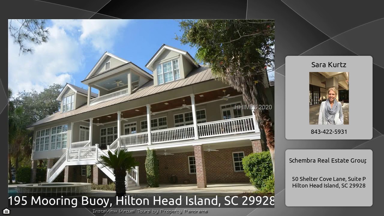 The Virtual Tour for the property at 195 Mooring Buoy, Hilton Head Island, SC 29928 listed for $2,350,000: Other homes for sale by Sara Kurtz of Schembra Real Estate Group: A stunning, custom Lowcountry estate home with sweeping views from every room of the 11-mile lagoon in a private setting. This home exudes Southern hospitality. Inviting front and back porches, impressive foyer, large living w/ fireplace and French doors overlooking back porch. Spacious Chef's kitchen, large island, wine bar, pantry, and separate mud room/laundry. First floor master suite w/ sitting room, & …