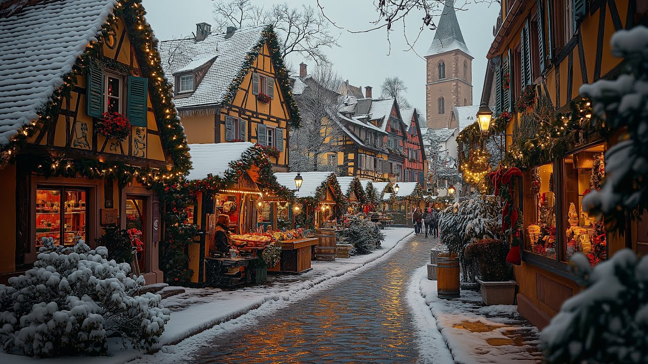 Colmar, a picturesque town in northeastern France, transforms into a magical winter wonderland during Christmas. The charming, colorful half-timbered houses of the Old Town are beautifully adorned with twinkling Christmas lights and festive decorations. The narrow cobblestone streets are lined with cozy Christmas market stalls, selling handcrafted goods, festive treats, and hot drinks, filling the air with the warm scent of gingerbread and mulled wine. The central square, Place des Dominicains, is bustling with shoppers and tourists, all immersed in the joyful holiday spirit. The stunning Saint-Martin Church towers in the background, adding to the town’s historic charm, while the canals reflect the soft glow of Christmas garlands and lights. Colmar’s Christmas celebration captures the essence of a quaint, European holiday town, where every corner radiates festive cheer and warmth.