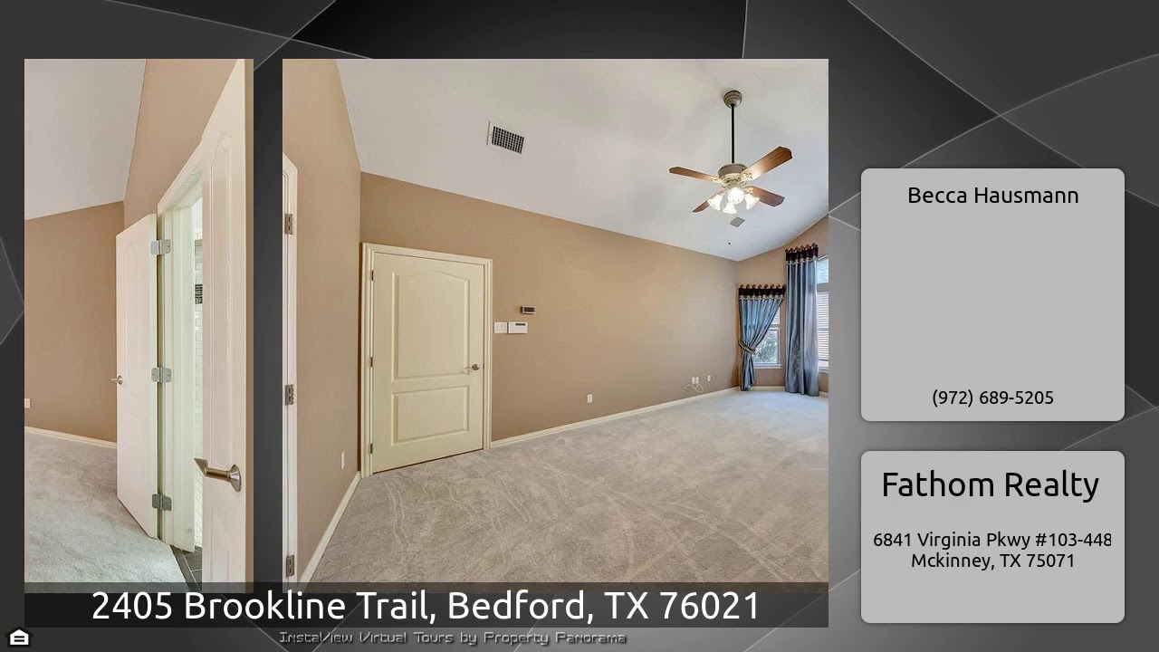The Virtual Tour for the property at 2405 Brookline Trail, Bedford, TX 76021 listed for $375,000: Other homes for sale by Becca Hausmann of Fathom Realty: Beautiful one-owner, single story home! From the foyer, walk into the front facing study with french doors. Floorplan perfect for entertaining: open dining, family room, kitchen + breakfast area. Plenty of cabinet space throughout home, including built ins in the dining and family rm. Remodeled kitchen with custom cabinets, updated tile back splash, granite counters, included fridge and more! Large master suite plus bath with tiled walk …