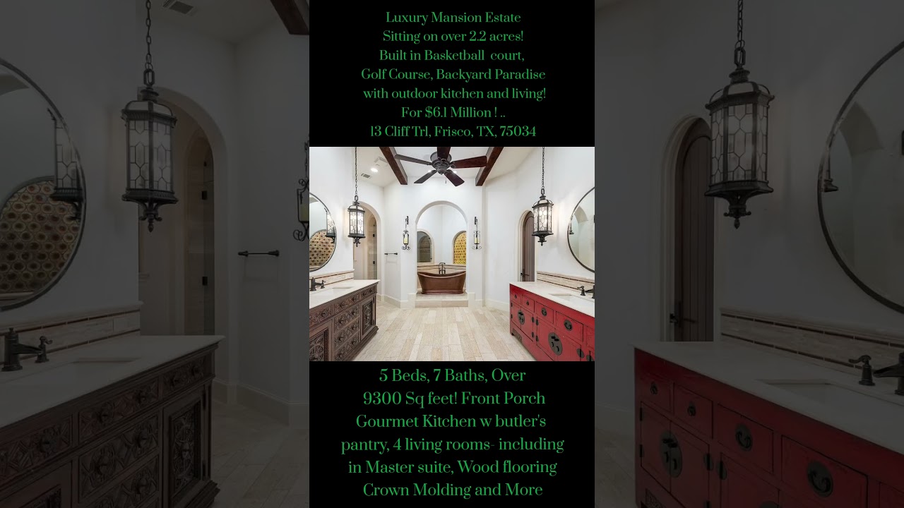 “LUXURY ESTATE MANSION” With Resort backyard, built in Basketball court, Golf Course PLUS sitting on over 2.2 Acres of Land! 🏰🏰🏠 For $6.1 Million! … Located 13 Cliff Trl, Frisco, TX, 75034