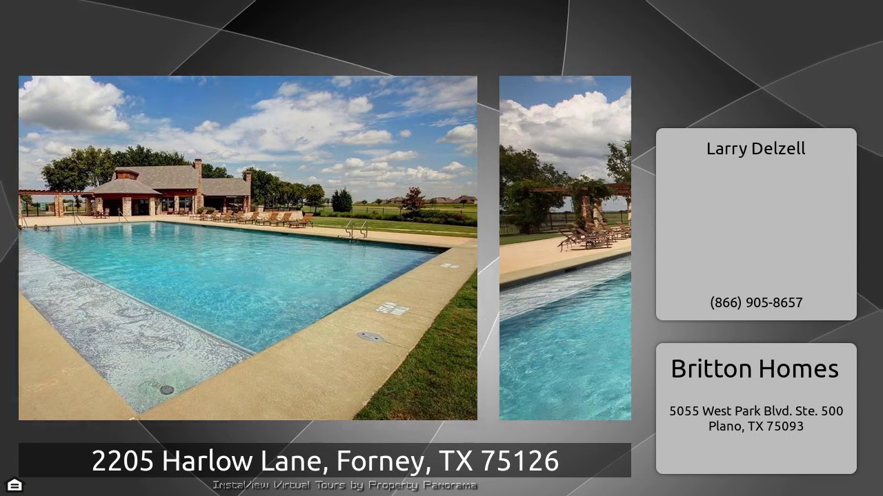 The Virtual Tour for the property at 2205 Harlow Lane, Forney, TX 75126 listed for $300,900: Other homes for sale by Larry Delzell of Britton Homes: PERRY HOMES NEW CONSTRUCTION! Library with French doors set at entry with 11-foot ceiling. Open island kitchen offers stainless steel appliances, corner walk-in pantry and inviting breakfast bar. Dining area flows into open family room with ceramic tile floor and wall of windows. Master suite includes bedroom with wall of windows. Dual vanities, corner garden tub, separate glass-enclosed shower and deep walk-in closet in master bath. Large …
