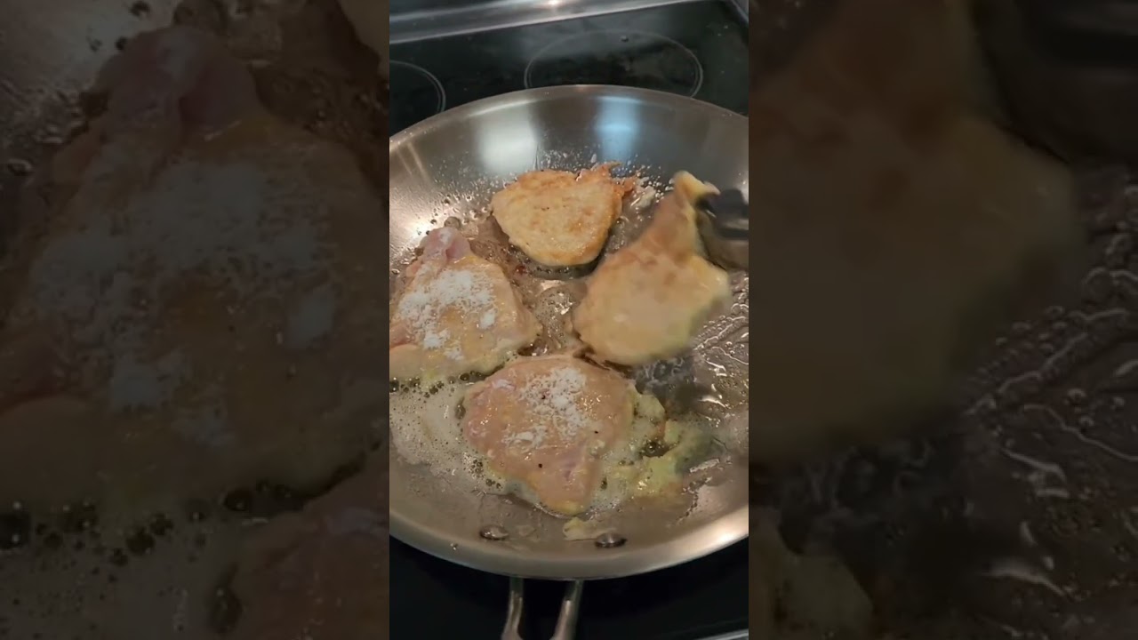 Chicken French toast on a stainless steel pan