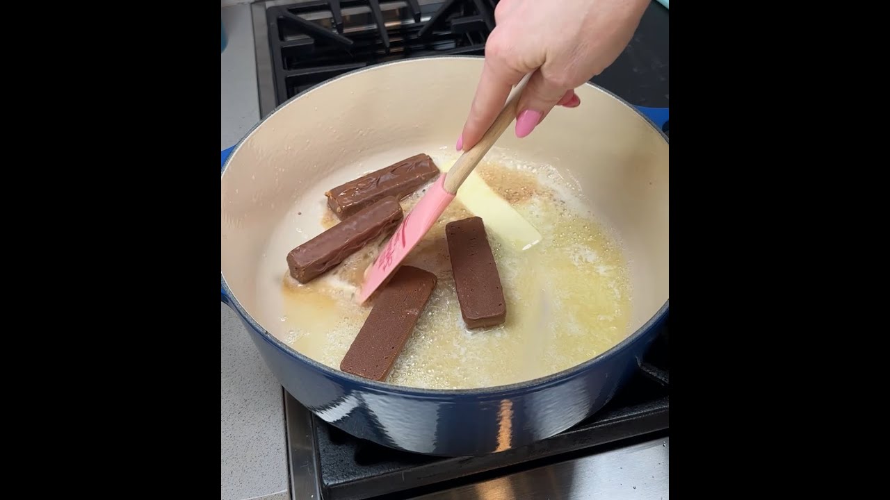 the idea is good. snd it looks good. but its way too hard. not sure why it is. and i could be wrong but from the sound of the crunch at. the end sounded like the treat was too hard. and. i think theres something still wrong with ur camera. bc ur video makes it sound like ur speech has a weird accent or something. im not picking on u at all. but. i am just letting u know so u can check this out. it sounds like a weird accent or ur sound is warped or its not recording right. its a slight lag. u and marty seem like nice people. and have some really good recipes. im just letting u know what im hearing. again ty for sharing ur recipe.
