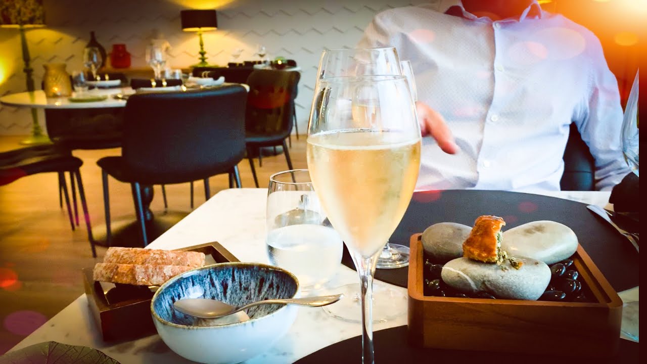 Dinner in the restaurant «L`Aromate» in Nice. This restaurant has One Michelin Star. We taste 6 plates set menu together with wine package.