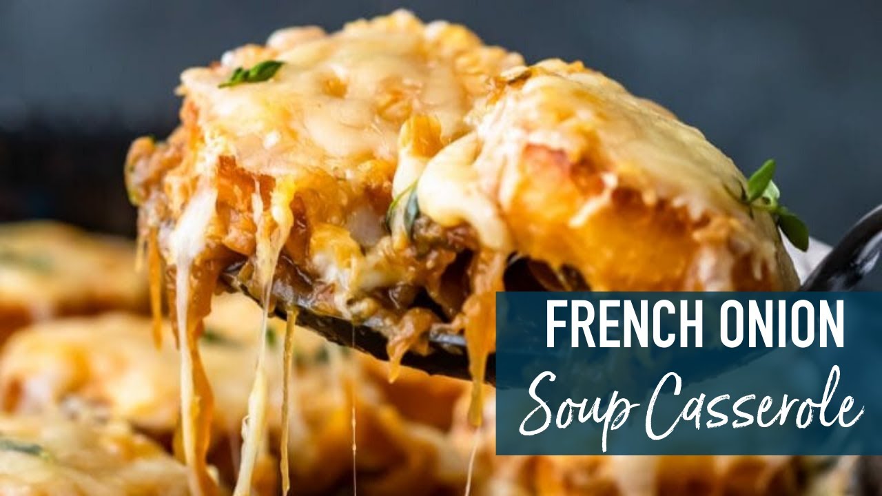 French Onion Soup Casserole is the perfect combination of a classic soup and an easy casserole recipe. This delicious French Onion Casserole is filled with caramelized onions, crunchy baguettes, and plenty of cheese. It tastes just like the soup, but in an easy to make weeknight dinner! I love this easy French Onion Soup Casserole!
