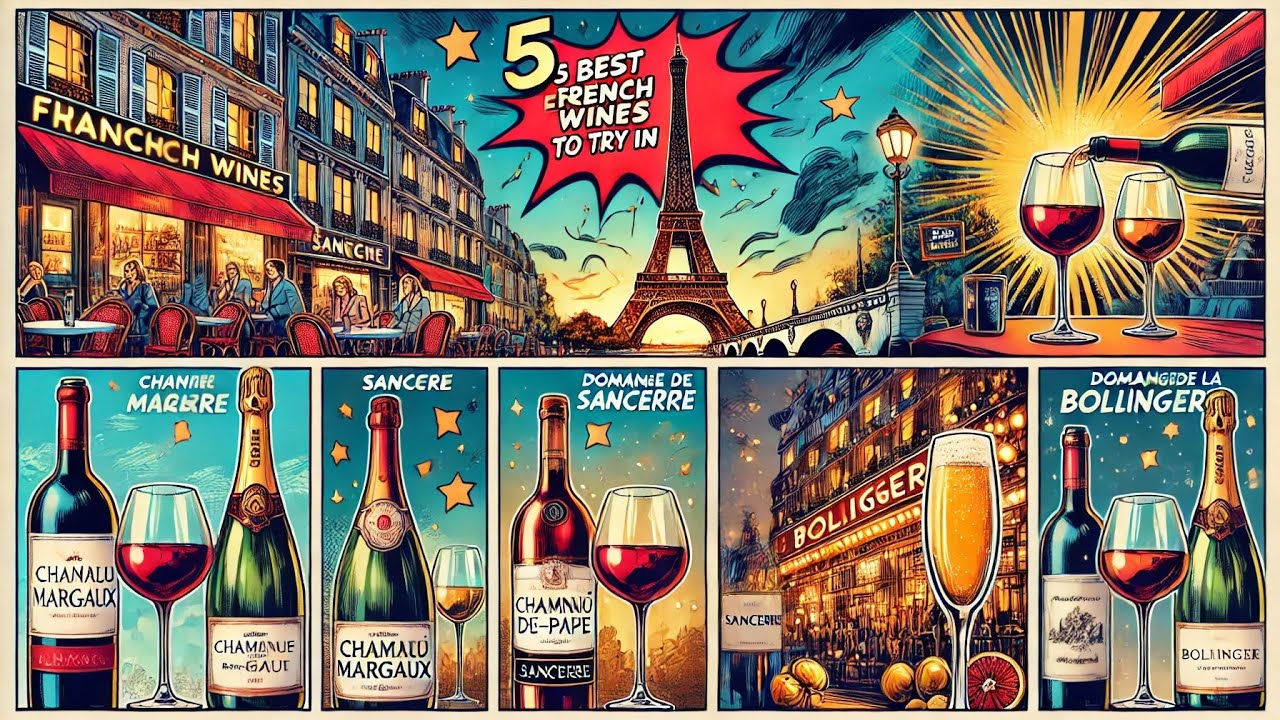 Discover the magic of Paris through its finest wines! From the elegance of Château Margaux to the bold flavors of Châteauneuf-du-Pape, join me on a journey of taste, art, and music. This comic book-style video pairs stunning visuals with an original jazz-inspired song, ‘Sip the Soul of Paris,’ celebrating the top 5 wines every wine lover must try in the City of Light. Santé to Paris and its liquid poetry!