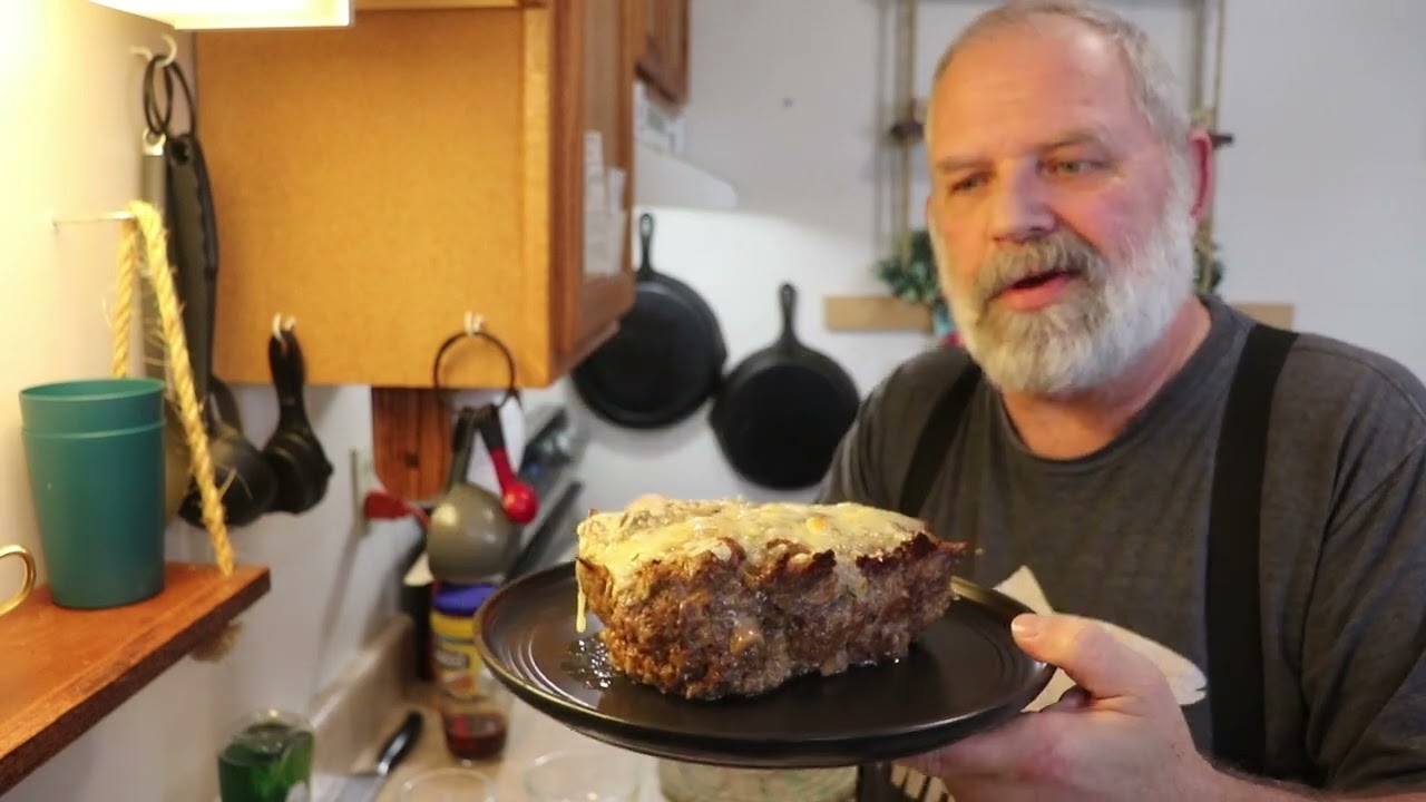 7) Once meatloaf is done remove from oven add onion mix and Swiss cheese to the top of the meatloaf, turn the oven broiler on, and broil cheese till golden brown.
