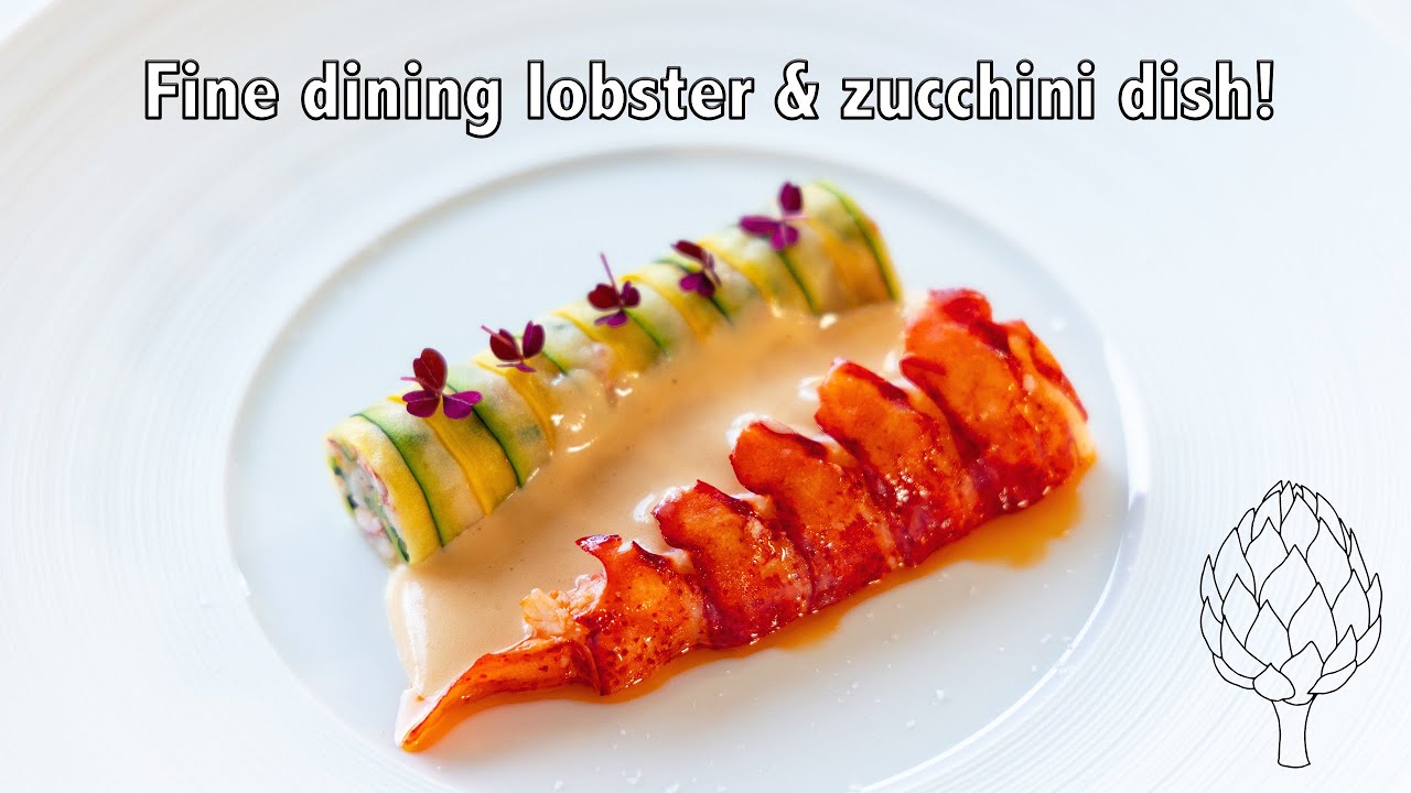 Hey guys! Today we’re going to make a beautiful lobster dish! It only contains three components, but it’s so good! I’m going to show you how to prepare a lobster and then we’ll use the head to make a beautiful bisque hollandaise. We’re serving it with a zucchini and lobster rouleaux and a chili oil. All great recipes, so enjoy guys!