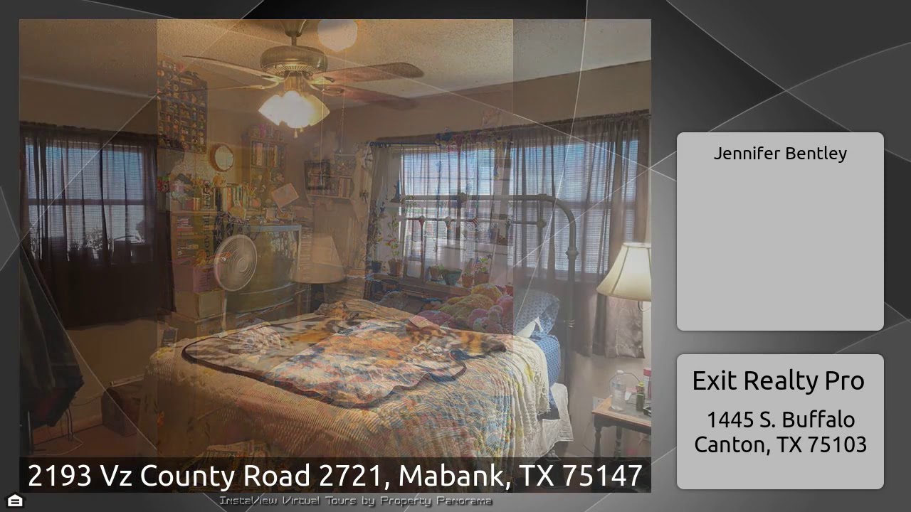 The Virtual Tour for the property at 2193 Vz County Road 2721, Mabank, TX 75147 listed for $225,000: Other homes for sale by Jennifer Bentley of Exit Realty Pro: Brick home on 2 acres with mature trees, fenced yard, pond and shed. Home has covered front porch, open living room with large brick fireplace, vaulted ceilings opens up to dining room. Kitchen and dining room have country french theme with tile flooring, tile counters and a mudd room. Separate laundry room with hot water heater. Built in shelves and desk in one bedroom. ADT security systems installed, high speed internet …