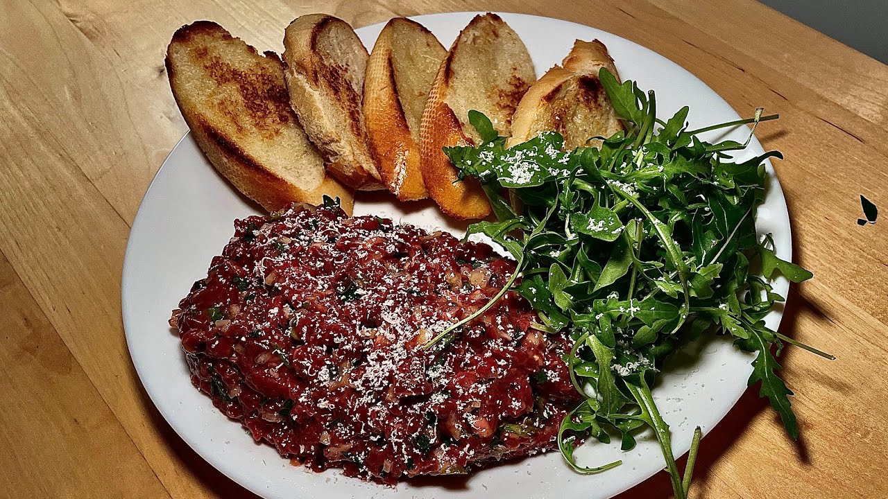 Beef Tartare is a French dish made from raw beef tenderloin. The dish is seasoned with various ingredients such as shallots, parsley, ketchup, mustard, Worcestershire sauce, etc. The dish is best enjoyed with potato chips or toasted baguettes.