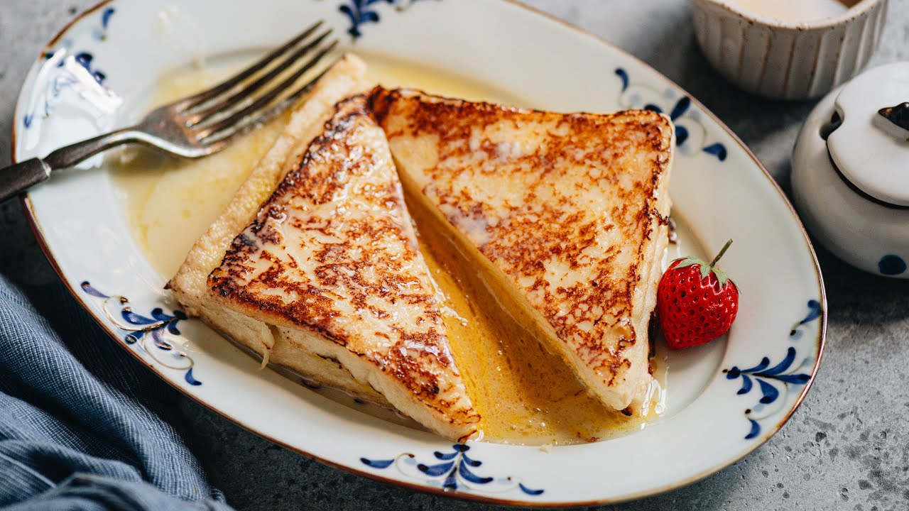 A decadent Hong Kong French toast made with a runny custard filling, pan fried until golden, then served with condensed milk and butter. Recipe ➡︎ https://omnivorescookbook.com/hong-kong-french-toast/