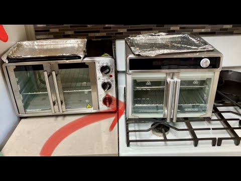 Elite Gourmet ETO2530M Double French Door Countertop Toaster Oven, Bake, Broil, Toast, Keep Warm, Fits 12″ pizza, 25L capacity, Stainless Steel & Black. BLACK+DECKER Crisp ‘N Bake Air Fryer Toaster Oven Combo, 12 in 1 Countertop Convection Oven Cooks Food Fast, Fits a Whole Pizza or 6 Toast Slices, French Doors with Stainless Steel Finish.