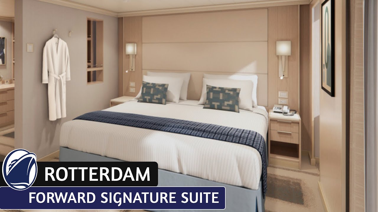 Join Danny as he tours a Signature Suite aboard the HAL Rotterdam. This is one of the top suites on the ship, and offers a huge amount of space to spread out. In this suite you will find an extra-comfy bed, large sitting area with a sofa, a writing desk, plenty of storage, a spacious bathroom, and an extra-large balcony to enjoy the beautiful ocean views.