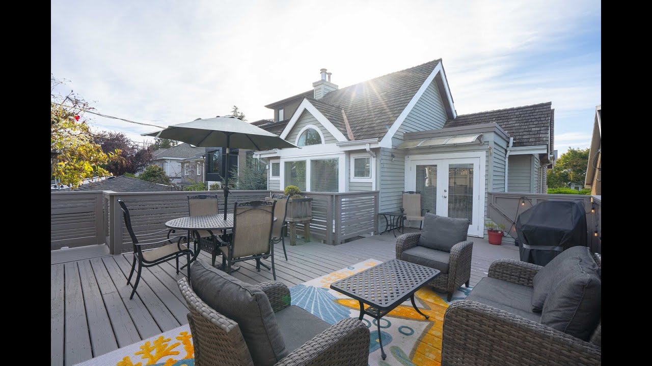 Live one block to the beach! Amazing opportunity in popular Kits Point! This gorgeous updated, charming, and cozy back half duplex offers a reverse plan of main living offering a gourmet kitchen, an open dining/eating area with French doors that extend out to a large entertaining deck and living room with cozy gas fire place. There is also a loft great for storage off the living room, and downstairs you will find two spacious bedrooms with a laundry area and full bathroom. There is a private single detached garage which is a rare treat in the area! Young families or professional couples that want to enjoy beach living will fall in love. Perfect location!