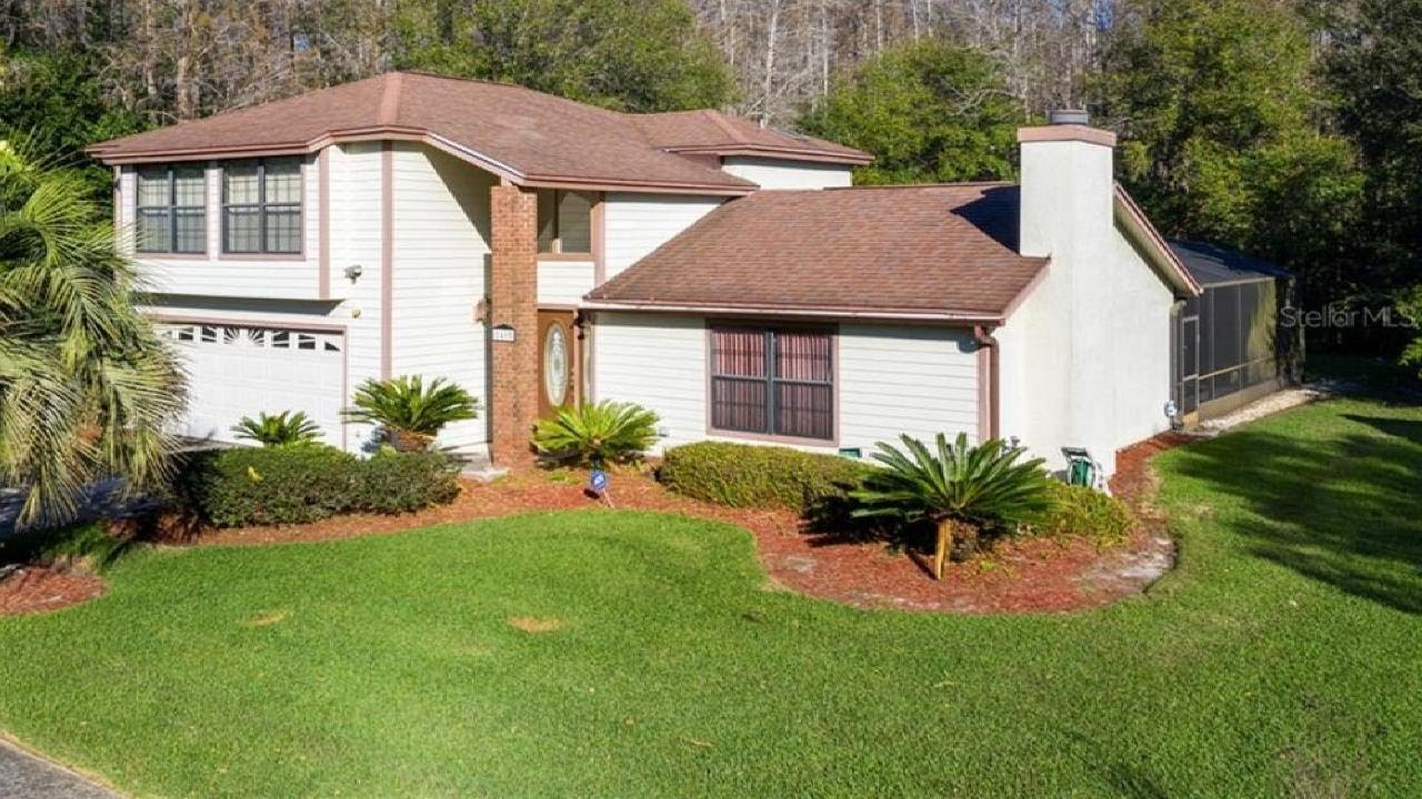 Fabulous 4 bedroom two story pool home. Step inside to amazing vaulted ceilings and a gorgeous brick fireplace. Large combined formal living room and dining room with access to your kitchen with ample counter and cabinet space plus granite counter tops. French doors in your dining room lead out to the amazing outdoor entertainment space and screened in pool. Enjoy the view out to your private backyard with no rear neighbors. Nice master bedroom with private bath upstairs plus two more bedrooms that share the hall bath. Downstairs you have a guest suite with a full bath. You’ll love the location with major shopping only 5 minutes away and ease of access to major highways and theme parks. Must see!