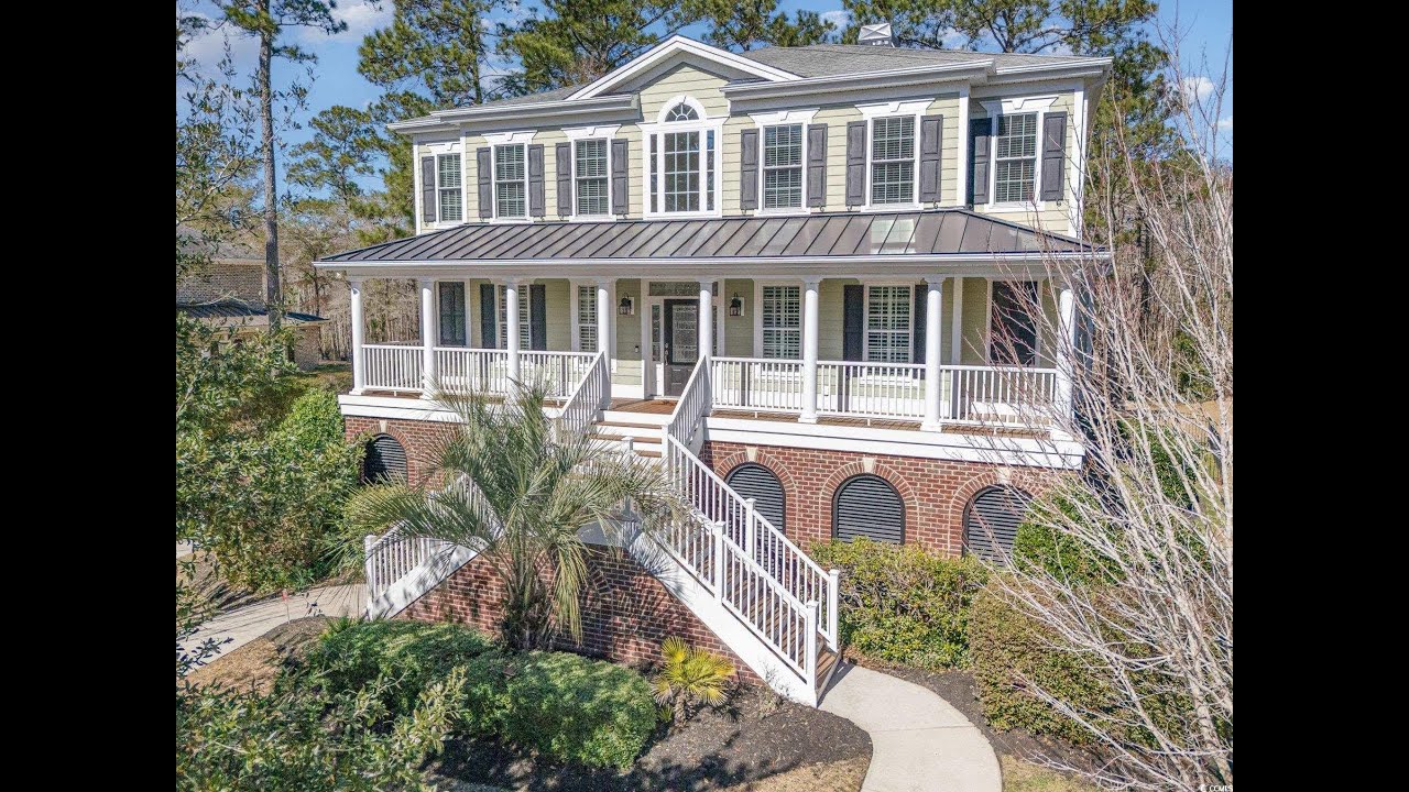 A RARE ownership opportunity! Experience Luxury and Grand Southern Living in this spacious 2+acre waterfront estate, situated in the highly sought-after gated community of Collins Creek Landing. Walk from the fenced backyard onto a private boardwalk through a tranquil wooded oasis to a PRIVATE FLOATING DOCK on deep-water Collins Creek, which ties directly to the Intracoastal Waterway a dream for boating or fishing enthusiasts, and nature lovers alike. This spectacular home with great curb appeal offers 5 bedrooms and 4.5 bathrooms on 3 levels with elevator access to ALL levels. Other exceptional features of the home are an exercise room with an attached full bathroom (which could alternately be used as a guest/in law suite), media room, office and shop room with an extra large 3-car garage with ample space for a golf cart, too. The circular driveway out front offers additional off-street parking for guests as well. Inside, find desirable features such as plantation shutters, real honey oak hardwood floors and triple crown moulding. Enter the main living level where a grand staircase in the two-story foyer separates a beautiful dining room and an office, with coffered ceilings and wainscoting found in both. The huge primary bedroom is also on this level, complete with a spacious en suite with tiled floors and granite countertops, featuring a walk-in shower, separate water closet, a jetted soaking tub, and dual walk-in closets. This main living floor is where you also find the family room with gas fireplace, which opens up through French doors to a lovely screenedporch overlooking the backyard and beyond. An eat-in gourmet kitchen with French country cream cabinetry and granite countertops, double ovens, open deck with gas grill hook up finish out this level. The top level of the home features 4 large bedrooms, 2 full bathrooms and a large media room perfect for movie and game nights. The lowest level of the home is where you find the exercise room with a full bath, shop room, and a huge 3-car garage with tons of storage space. Outdoors find a large patio space with a built-in gas grill and fire pit. Residents of this exclusive gated community enjoy access to exceptional amenities including a community center complete with kitchen and bathrooms, neighborhood pool, batting cage, soccer field, basketball court, and playground area. Beyond the community center find a boat Launch, gazebo & scenic boardwalk to Collins Creek. Additionally, the community also has a locked boat storage facility for residents only. For beach lovers Huntington Beach State Park is a mere 10 minutes away. This Low country masterpiece offers an unparalleled lifestyle – Schedule your private tour today!