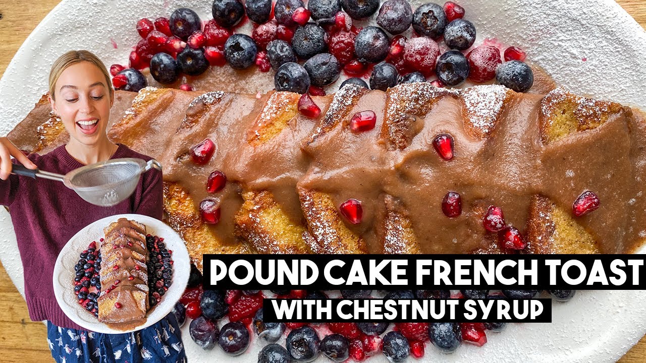 Elevated holiday brunch in HALF the time. Half homemade, but 100% creative and delicious. This pound cake French toast incorporates pre-made pound cake, and takes it to the next level. I created a chestnut syrup with pre-made chestnut purée, and then I turned this pound cake into french toast and served with berries for some extra flare. RECIPE HERE: