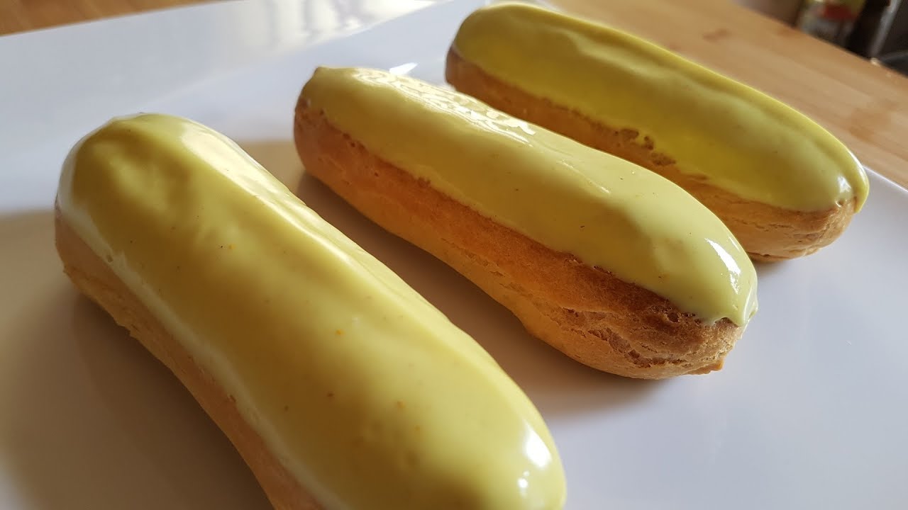 An éclair is an oblong pastry made with choux dough filled with a cream.
