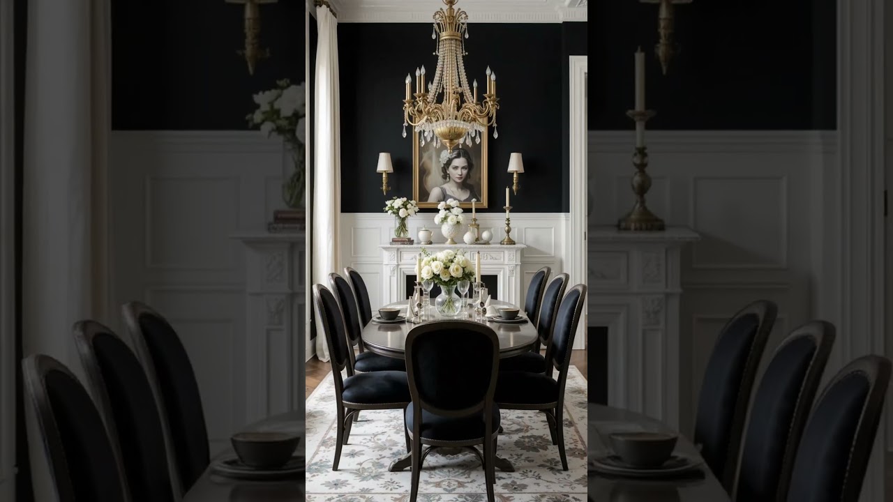 Set the mood for sophisticated dining! 😍 This French classic dining room exudes chic ambiance with its black, soft white, and antique gold color scheme. Find inspiration for your next dining room refresh! Brought to you by DAZZLE CREATIVES. #frenchstyle #diningroomdesign #interiordesign #classicdecor #elegantdining #roomtour #dazzlecreatives #shorts